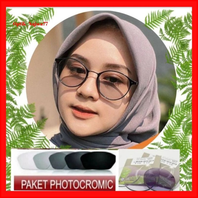 Qla - Frame Kacamata Wanita Minus Photocromic Anti Radiasi Kacamata Bulat Oval Lentur