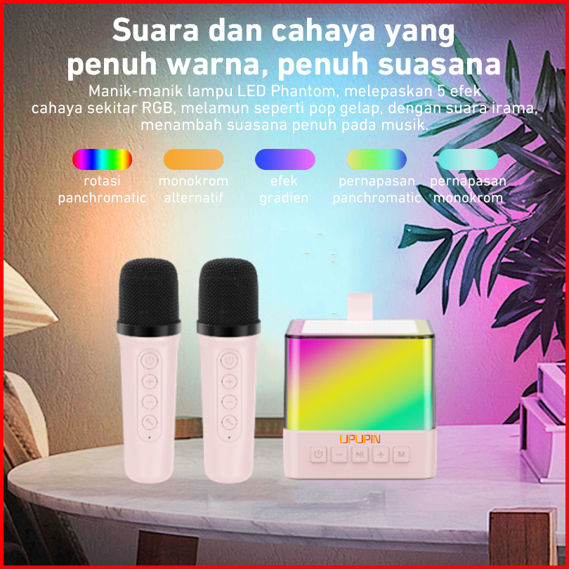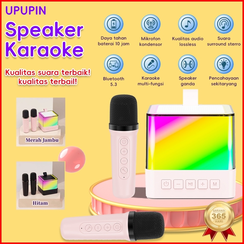 Upupin Speaker Karaoke Bluetooth Mini 2 Mic 1 Set Portable With Mic Bluetooth Mp3 Player Full Bass Wireless Karaoke Mic