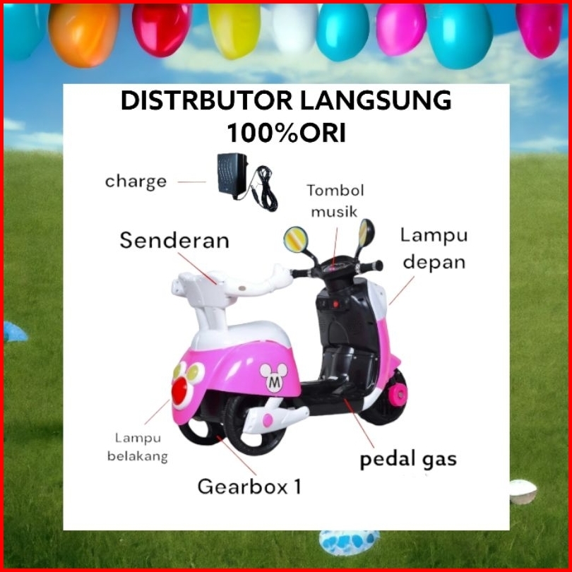 Mainan Motor Aki Anak Listrik Micky Mouse Musik Lampu Charge Hwl6688 Distributor Langsung