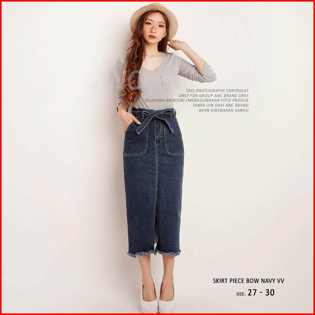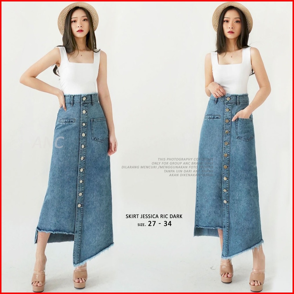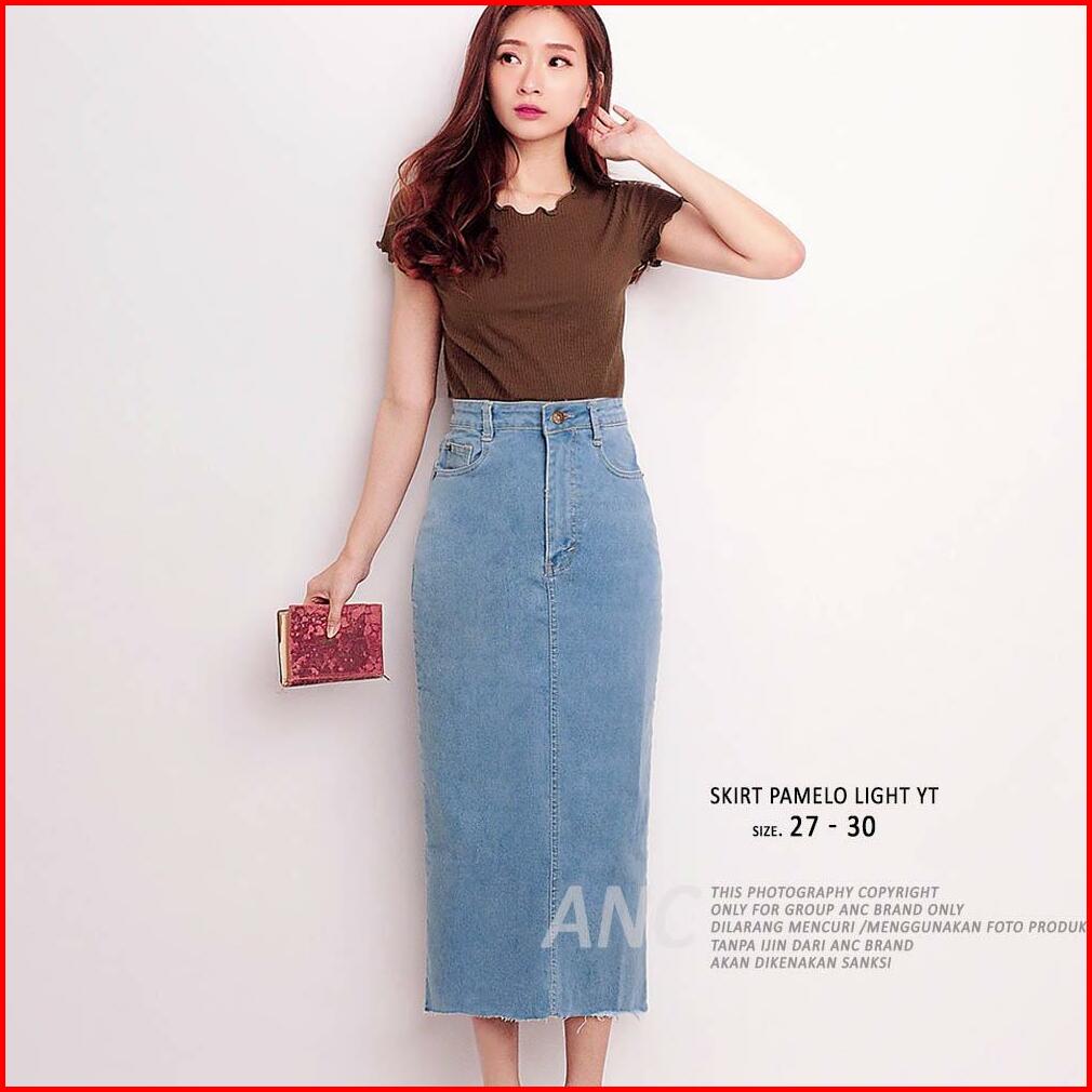 Skirt Jeans Denim Midi Wanita - Korean Skirt Collection Premium