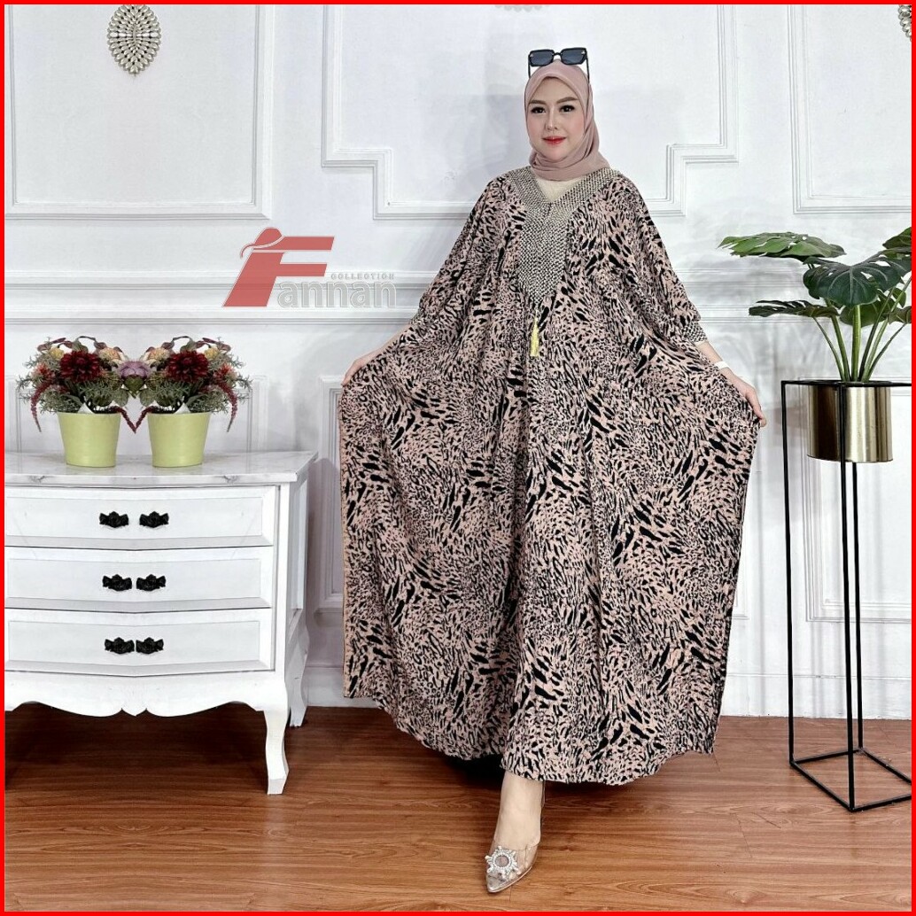 Kaftan Kondangan Motif Leopard Batik Wanita Modern Jumbo