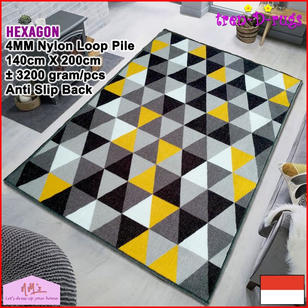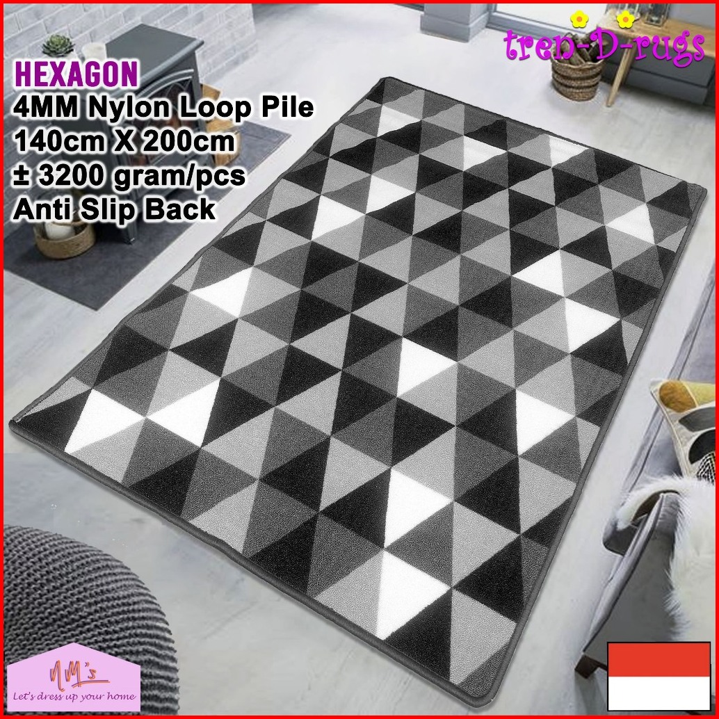 Tren-d-rugs Karpet Triangle Modern Scandinavian Alas Lantai Ruang Tamu Anti Slip 140 X 200 Cm