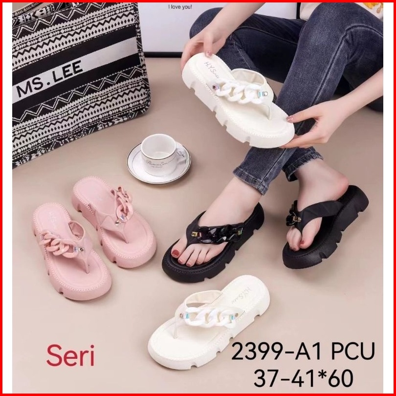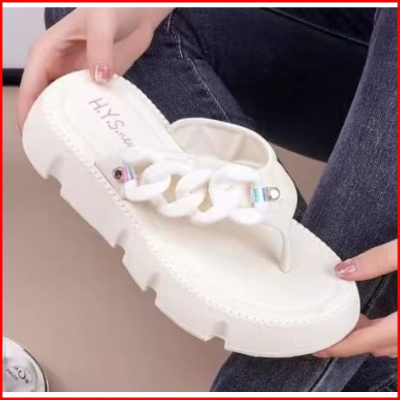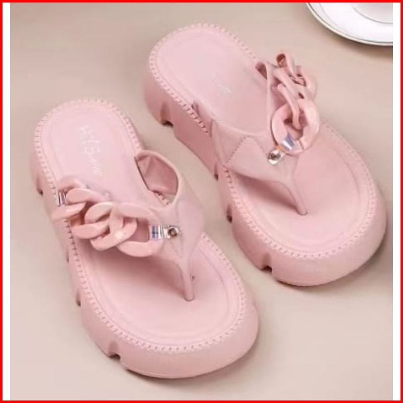 Sandal Jepit Wedges Tali Rantai Jelly Platform Tebal Wanita Import 2399 Pcu