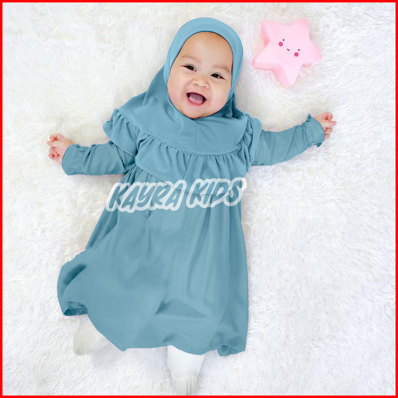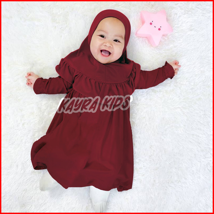 Baju Gamis Bayi Perempuan 0-3 Tahun Pakaian Muslim Anak Free Jilbab Dress Lebaran