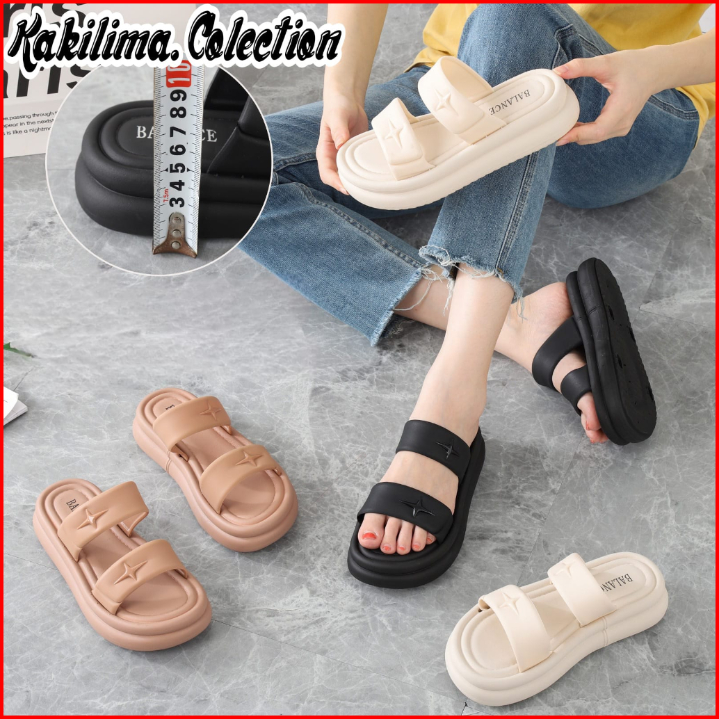 Sandal Slop Karet Jelly Wanita Sandal Wedges Perempuan Balance 1420-1a