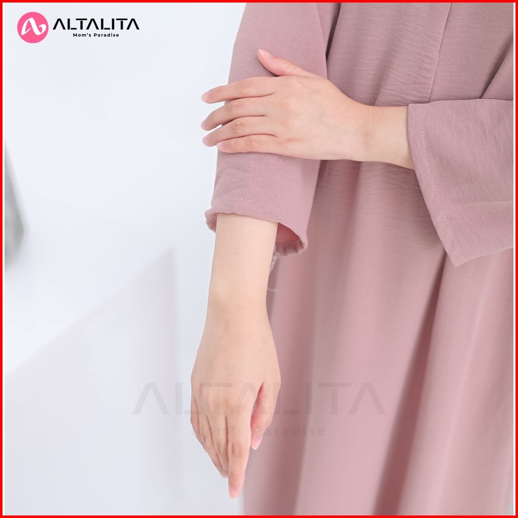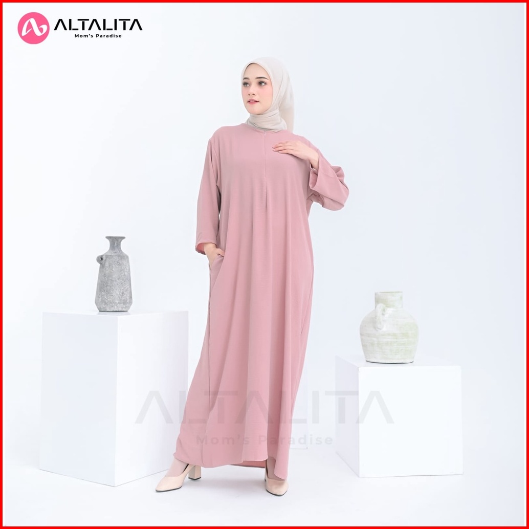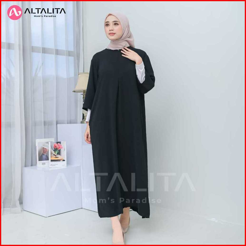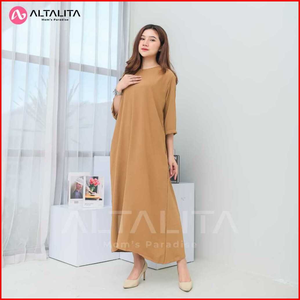 Altalita - Dress Ceisya Daster Gamis Polos Panjang Lengan 3 4 Crinkle Airflow Kekinian Semata Kaki Busui Jumbo Ld 120