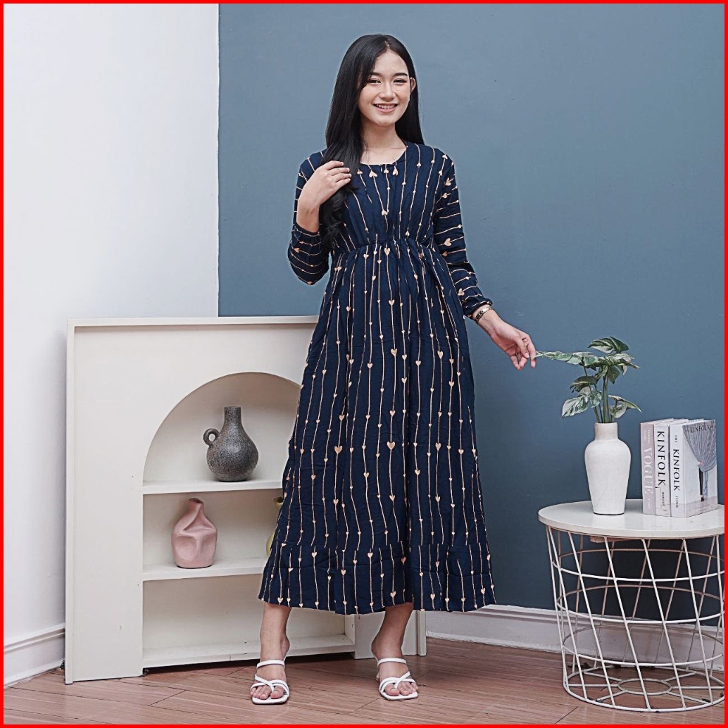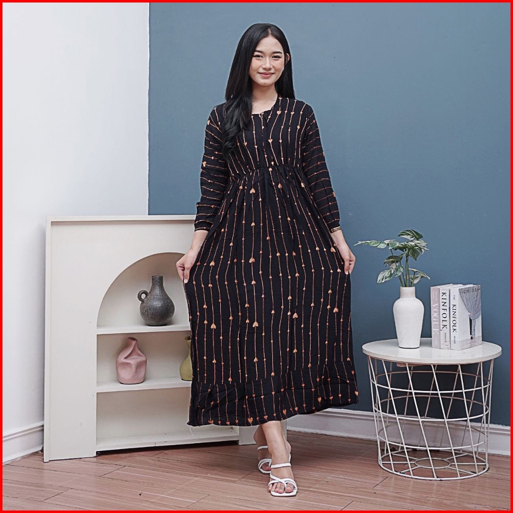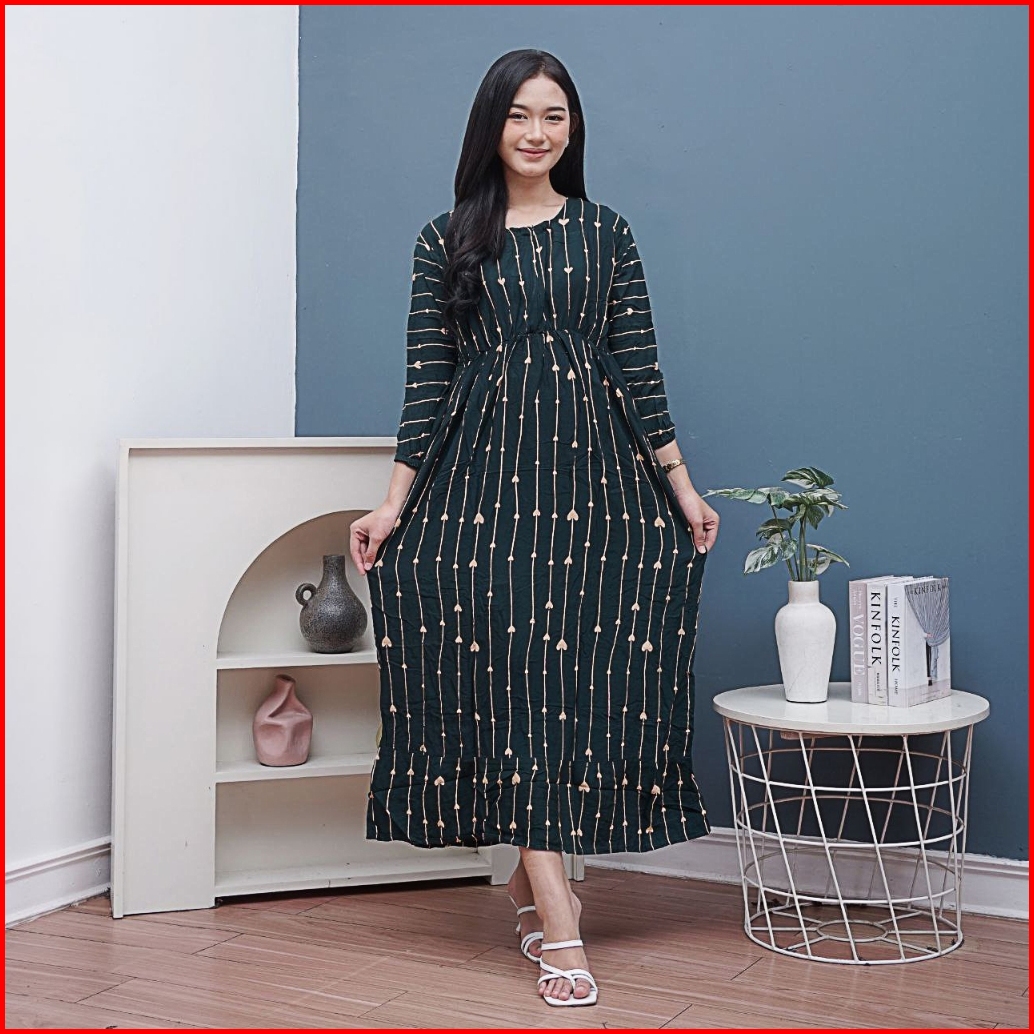 Daster Midi Dress Lengan Panjang Kekinian Kerut Dada Busui Rayon Premium