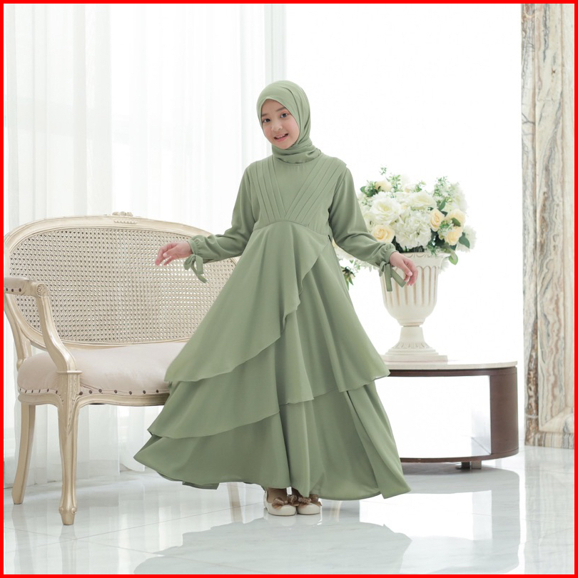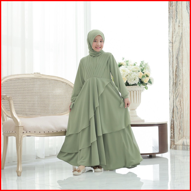 Khazara Kids - Clarissa Dress Kids Pasmina - Dress Anak Perempuan - Gamis Anak Perempuan