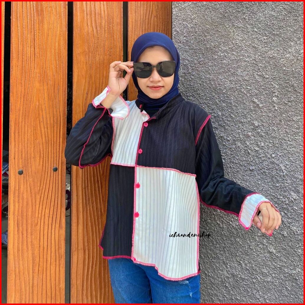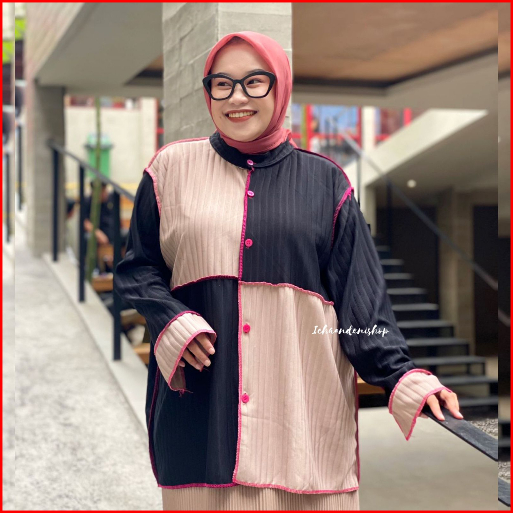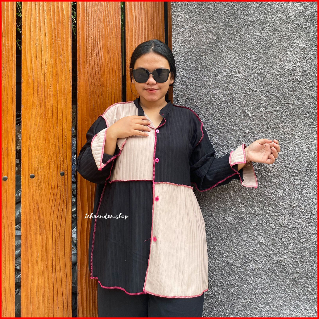 Ich - Yoona Top Blouse Knit Oversize Atasan Wanita Colorblock Jumbo Korean Style