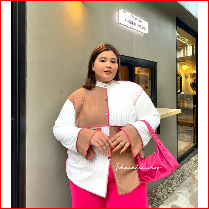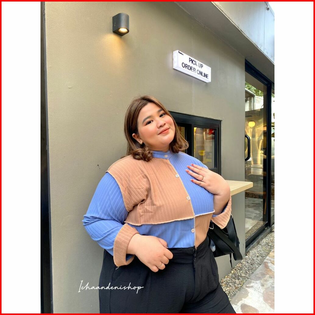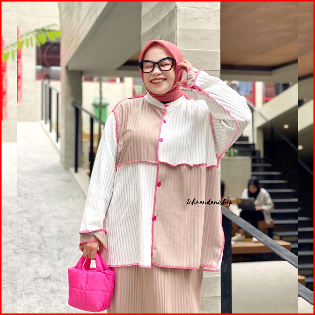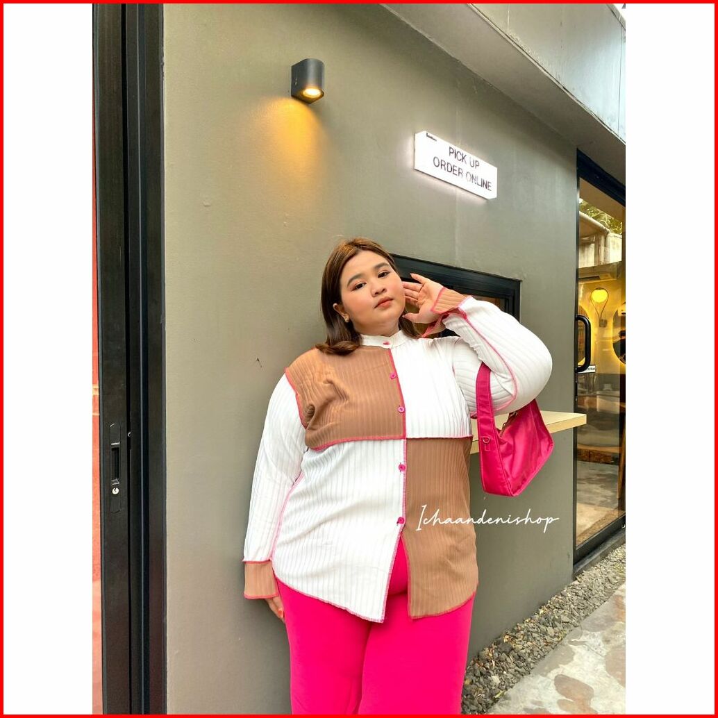 Ich - Yoona Top Blouse Knit Oversize Atasan Wanita Colorblock Jumbo Korean Style
