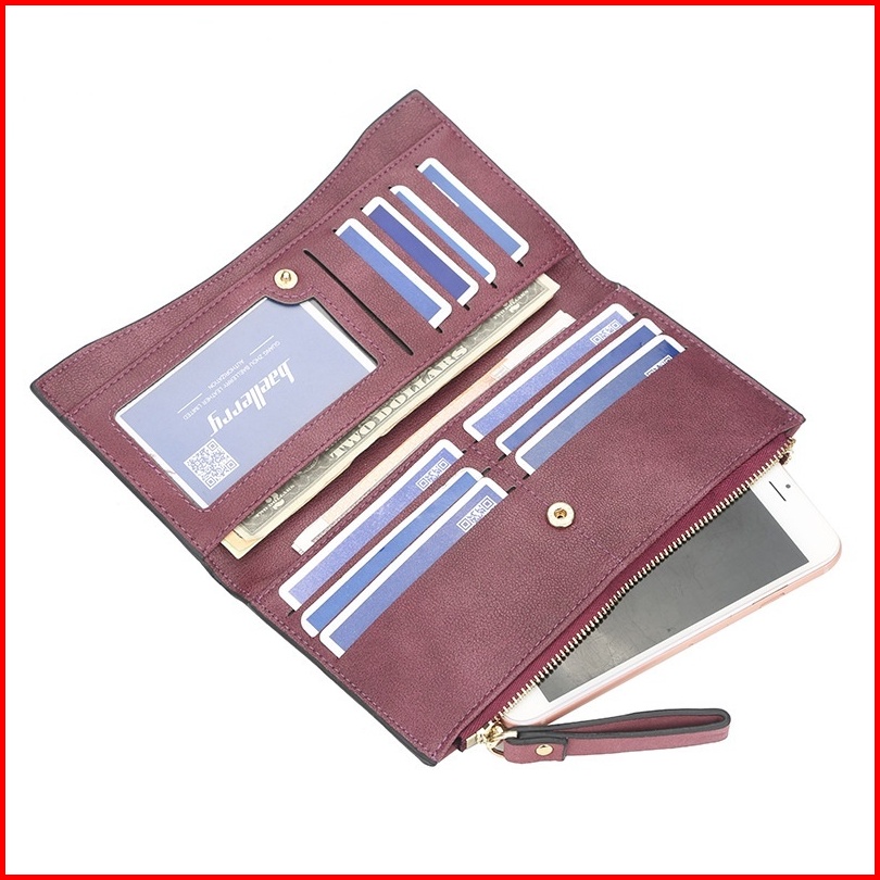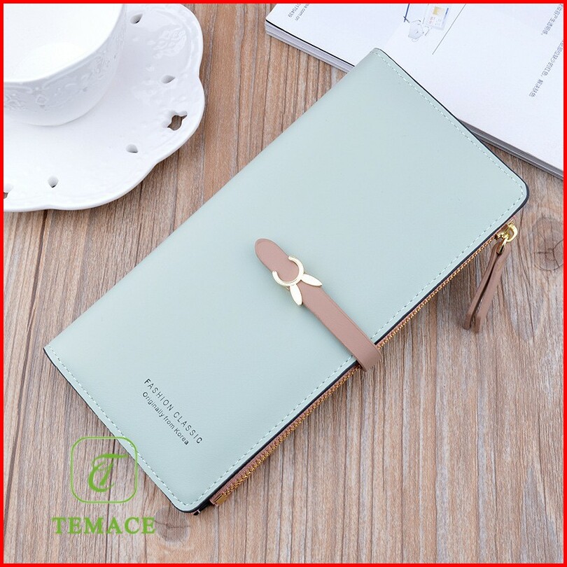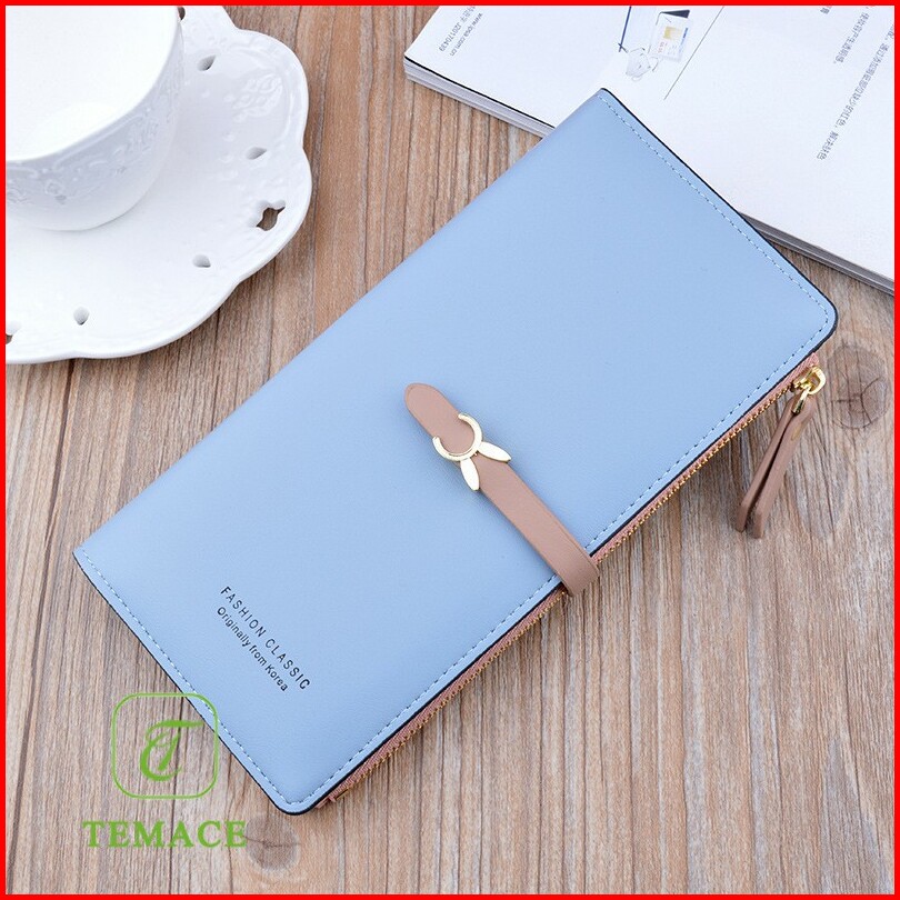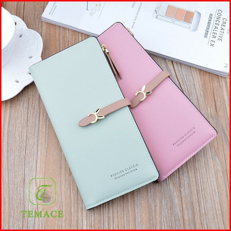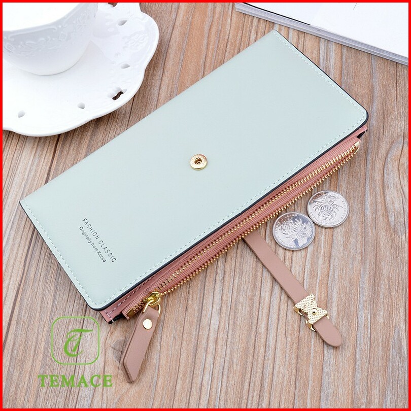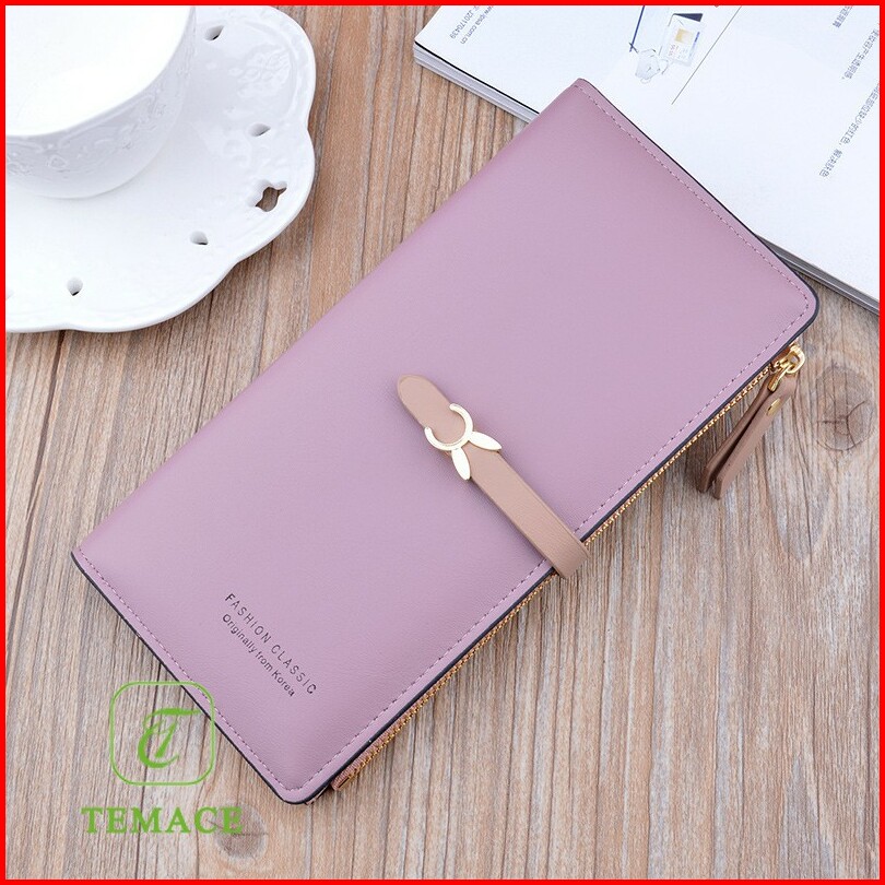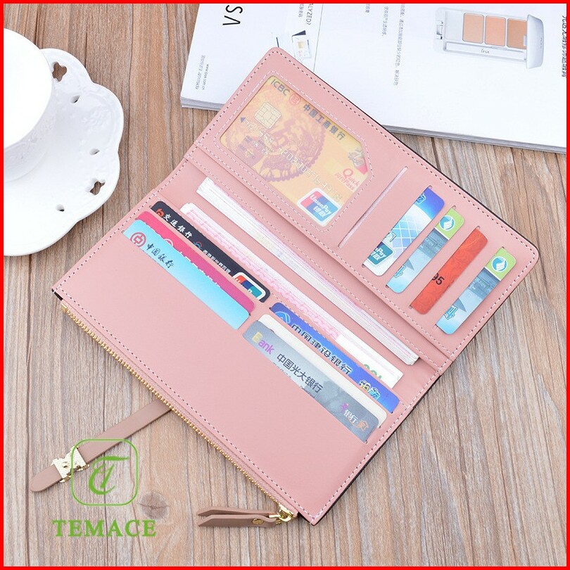 Hadiah Wanita Dompet Kartu Slot Lipat Panjang Pu Kulit Padat Kapasitas Besar Uang Tunai