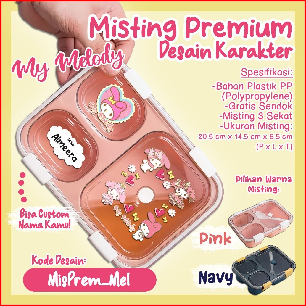Misting Lunchbox Kotak Makan Bento Box Custom - Desain Karakter Kartun Kesukaan Anak Favorit My Melody Kode Misprem Mel