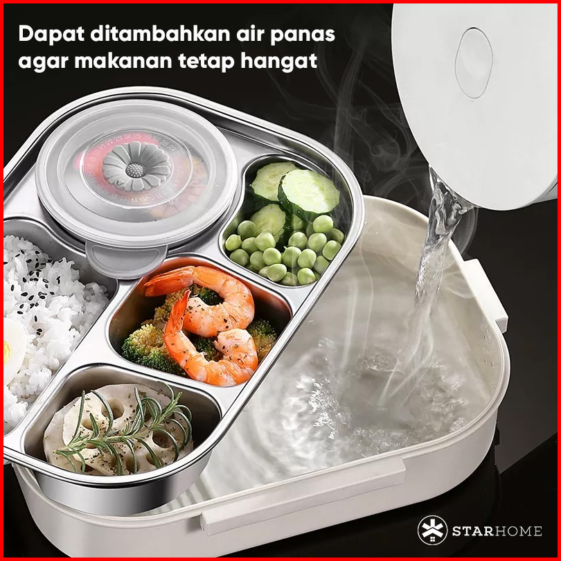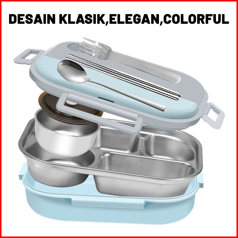 1.6l Lunch Box Kotak Bekal Stainless Kotak Makan Anti Tumpah 5 Grid Tepak Makan Hitam Dengan Mangkuk Sup Free Sendok Sum