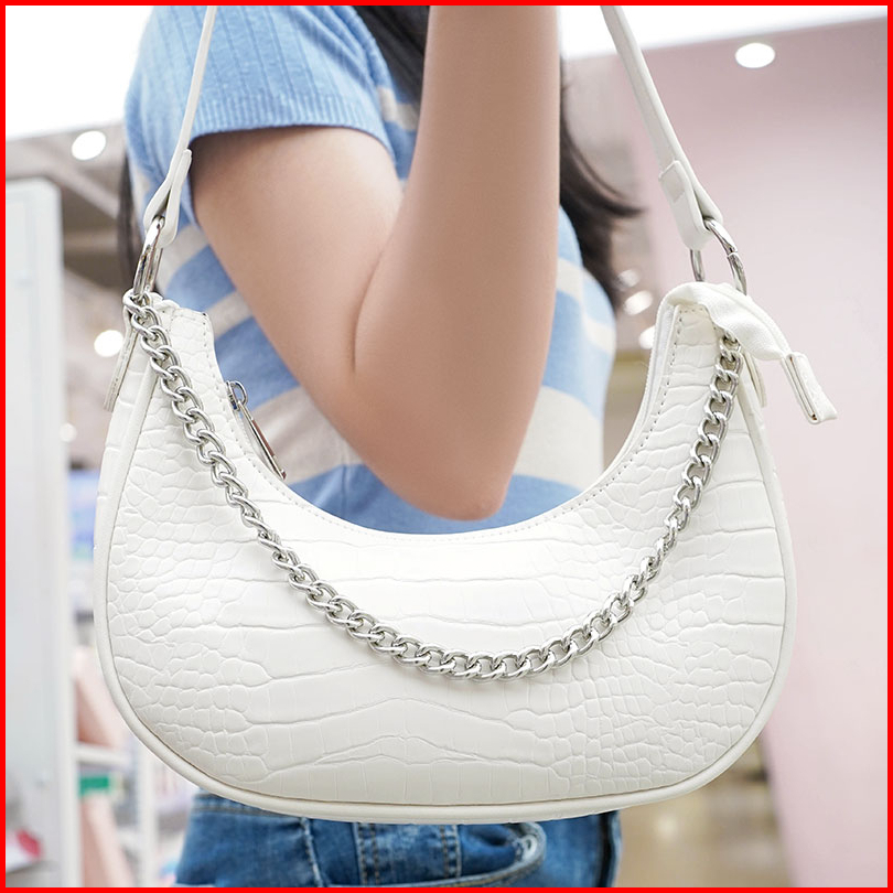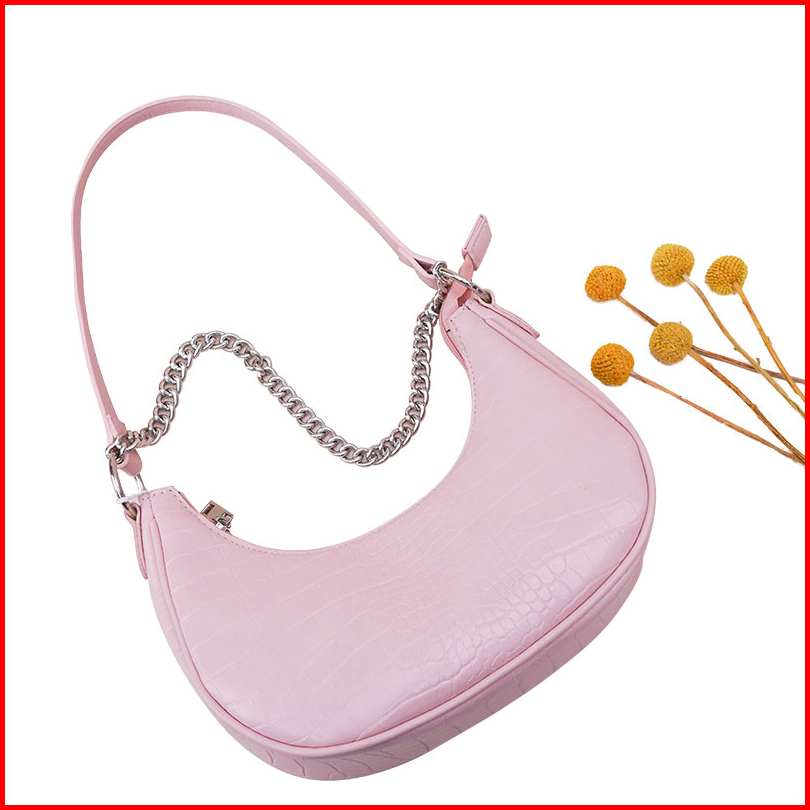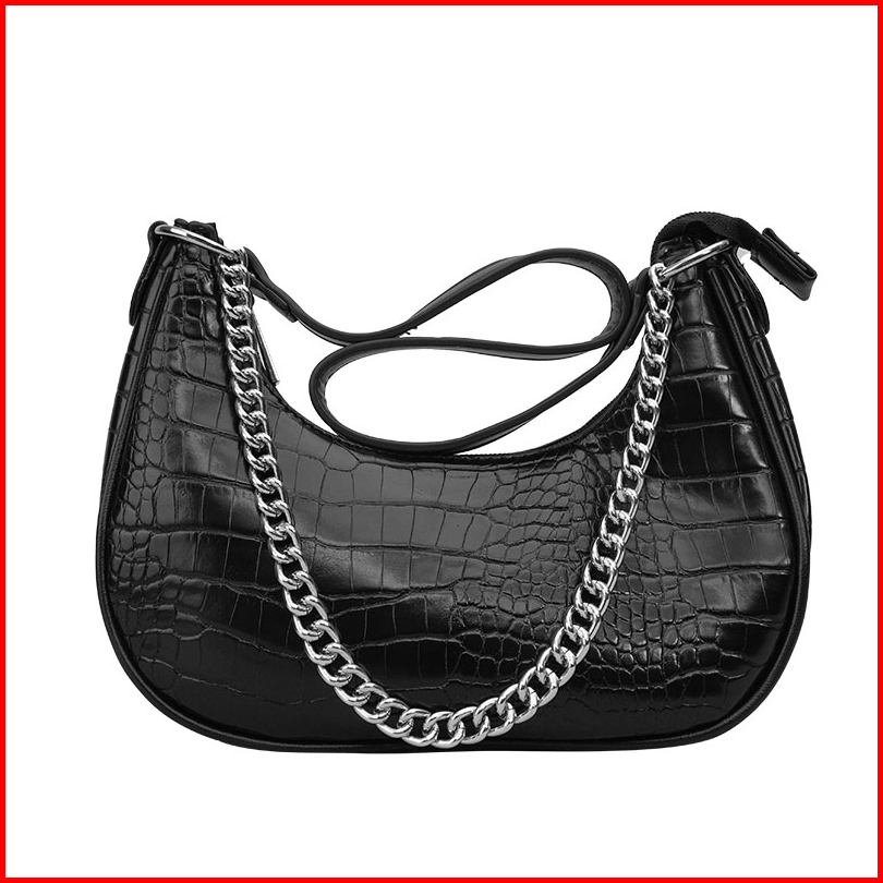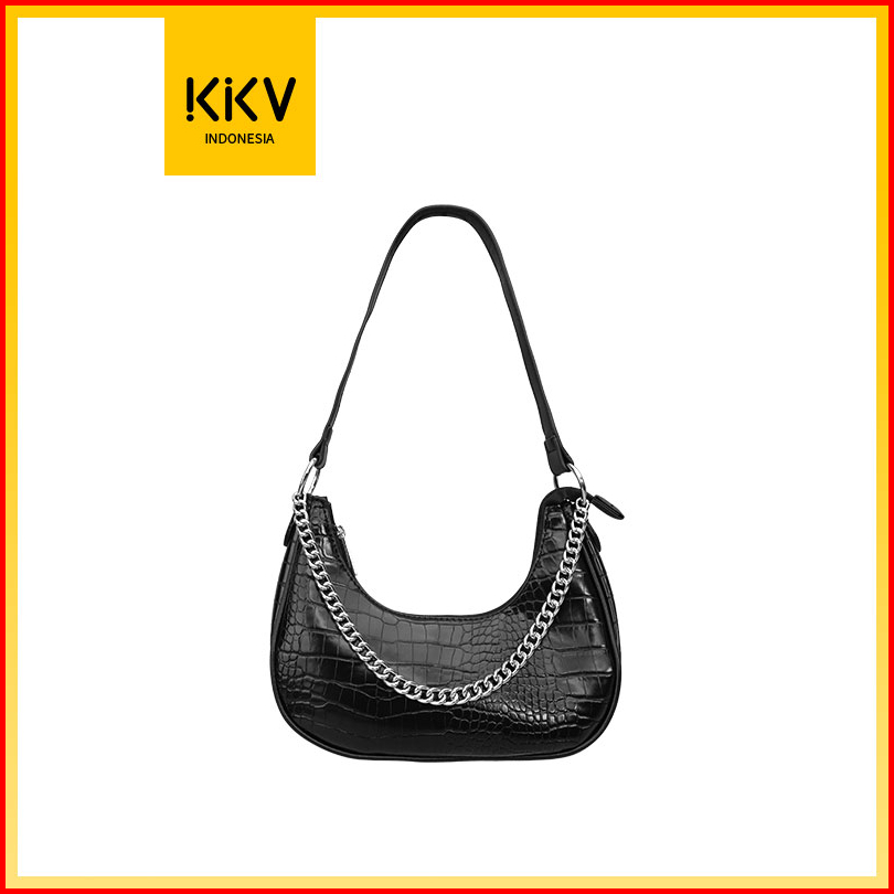 Kkv Dunns Tas Rantai Buaya Tas Bahu Wanita Kulit Hitam Glossy Black Leather Shoulder Bag Pink White Black