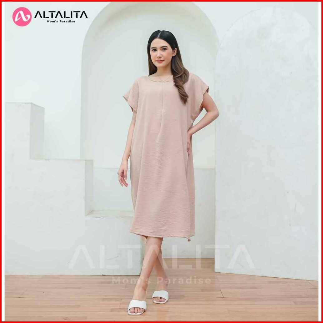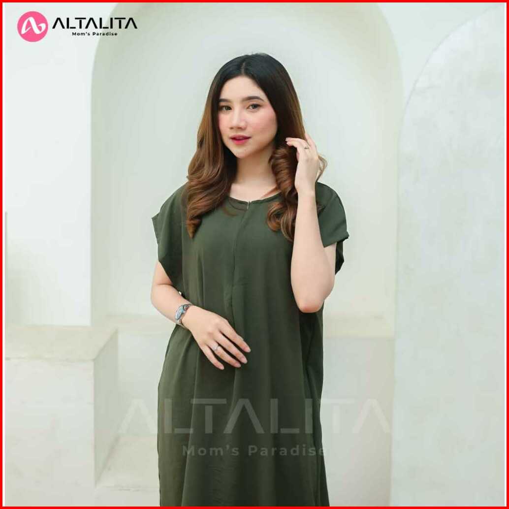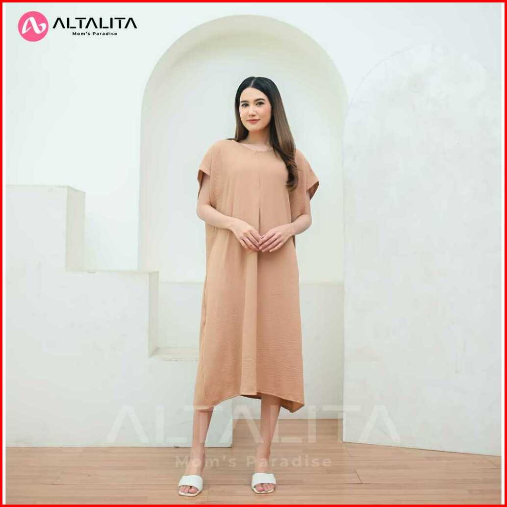 Altalita - Daster Octavia Cringkle Airflow Polos Busui Kekinian Jumbo Panjang Selutut Non Ruffle