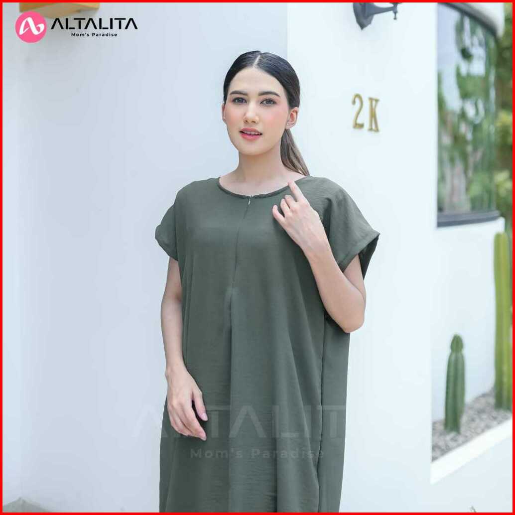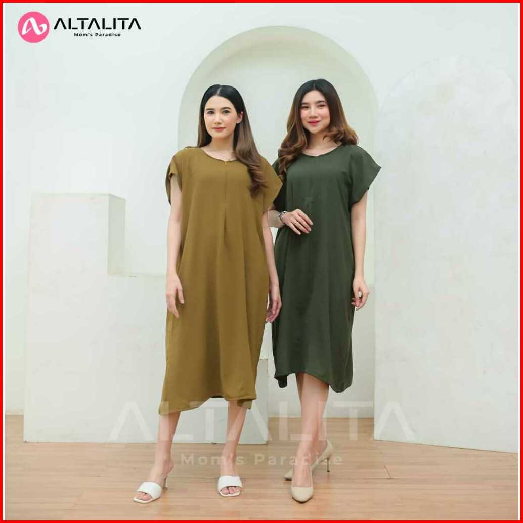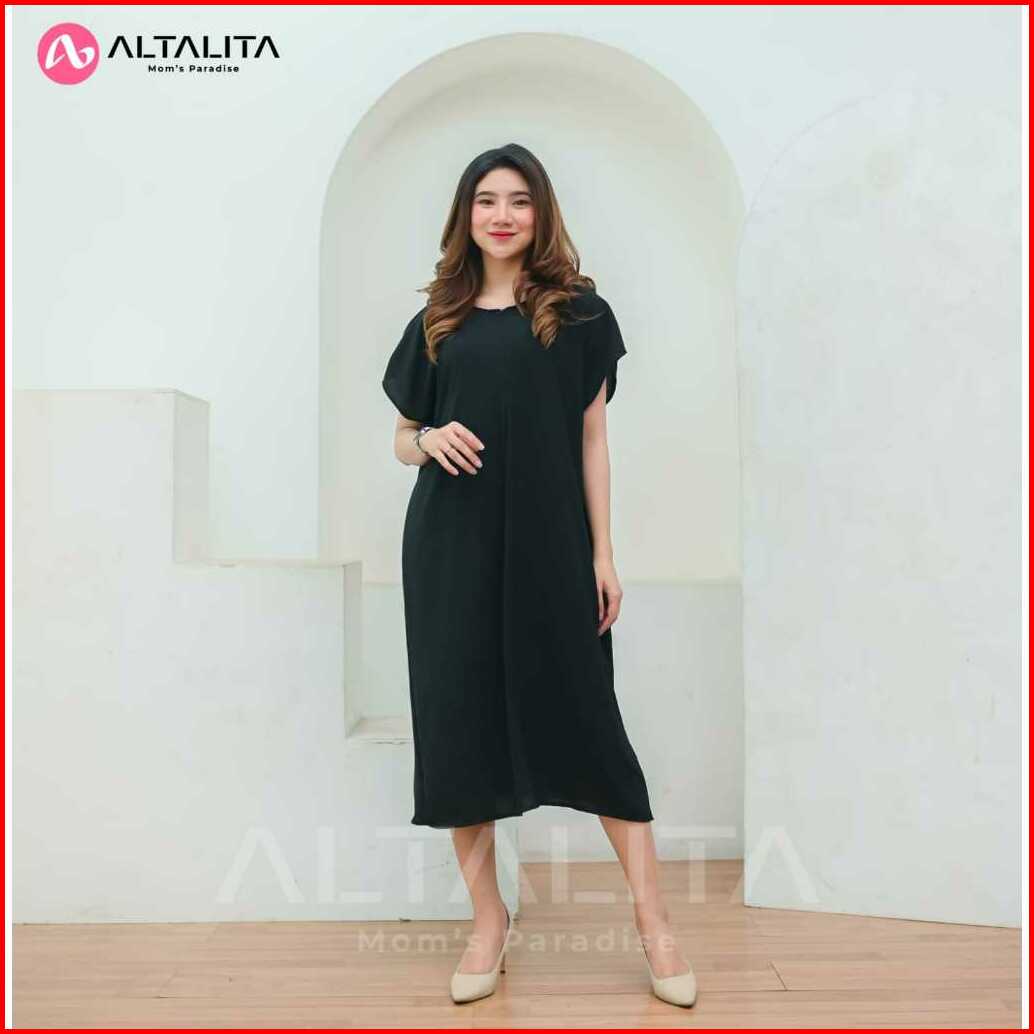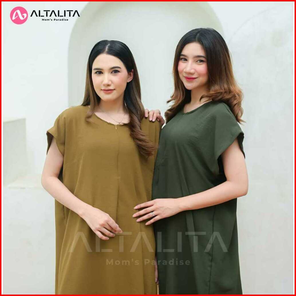 Altalita - Daster Octavia Cringkle Airflow Polos Busui Kekinian Jumbo Panjang Selutut Non Ruffle