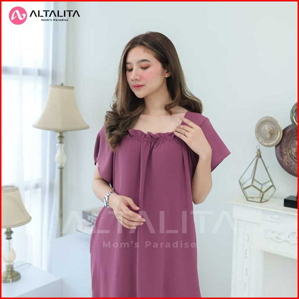 Altalita - Daster Ruffle Polos Fuji Laura Cringkle Airflow Kekinian Kerut Dada Panjang Selutut Jumbo Ld 120