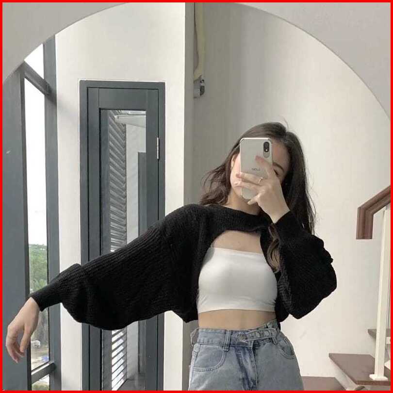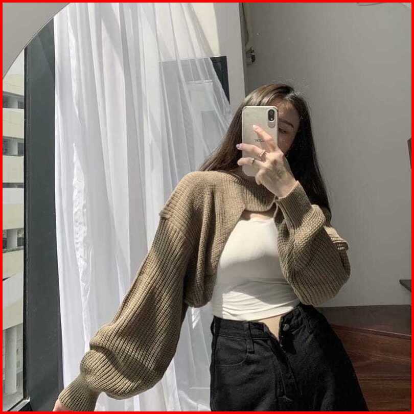 Queenbags89 Baju Outfit Cewek Baju Atasan Wanita Baju Rajut Balero Crop Top
