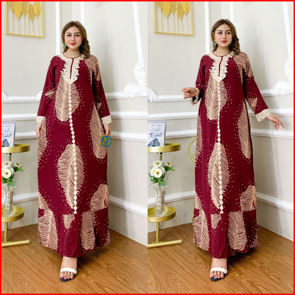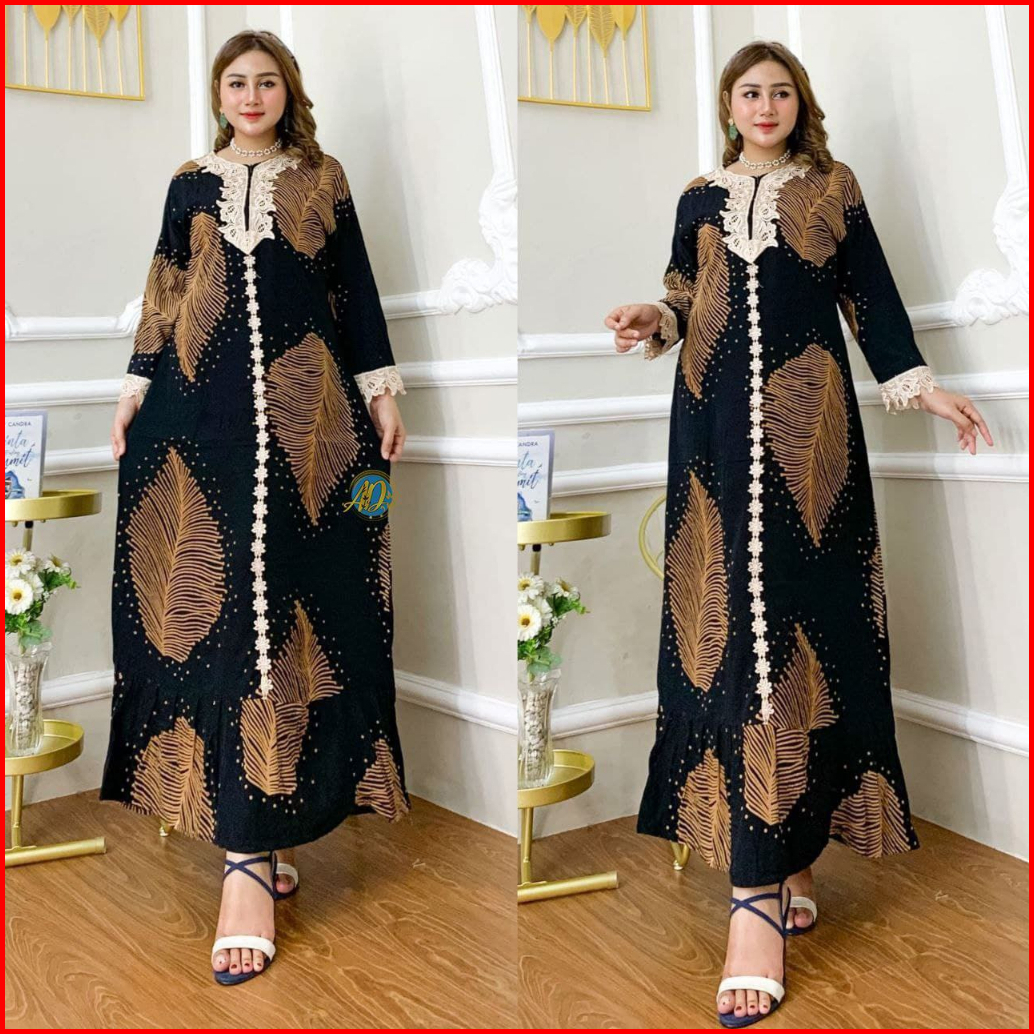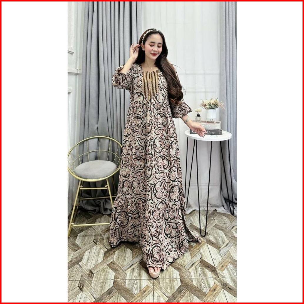 Daster Arab Lengan Panjang Melisa Motif Terbaru Longdress Renda Kekinian Model Busui Ziper