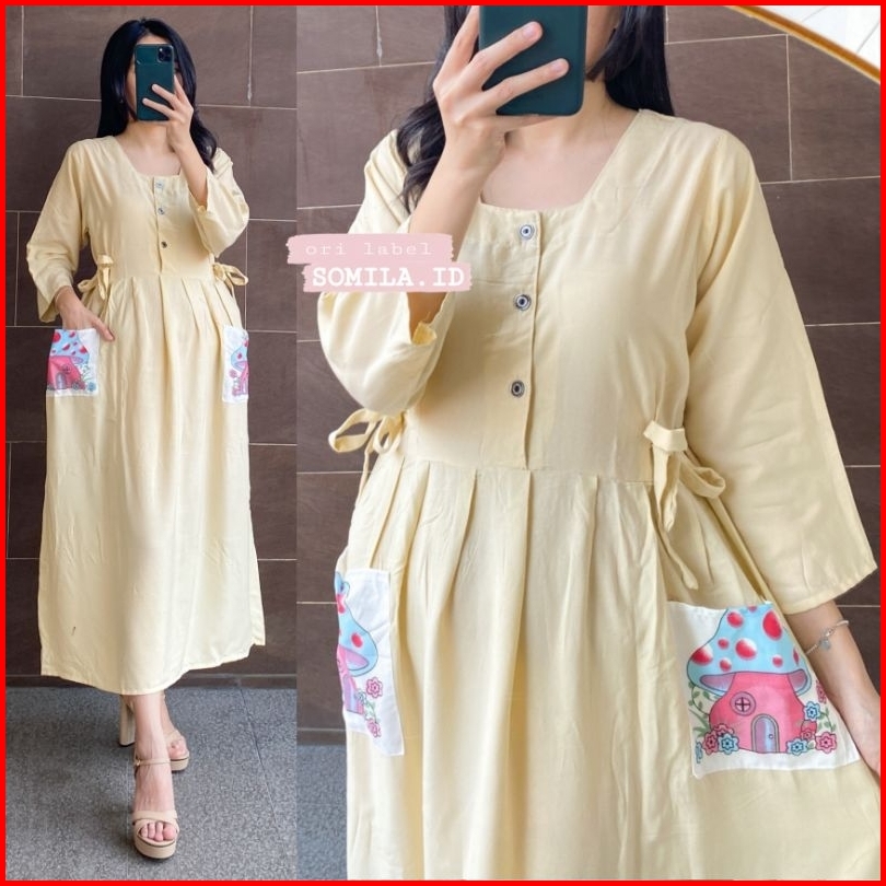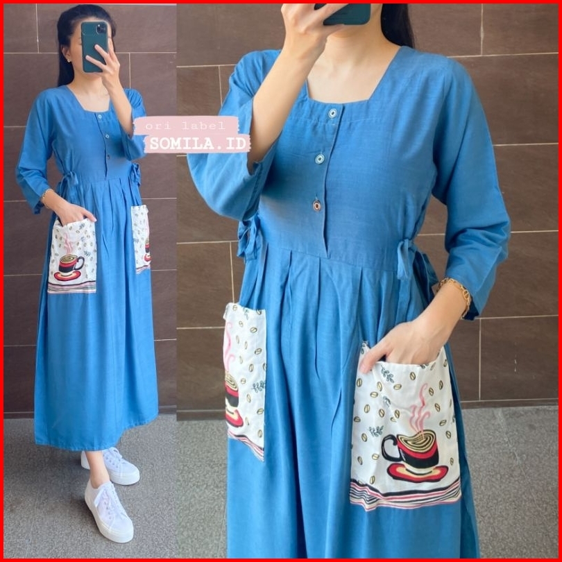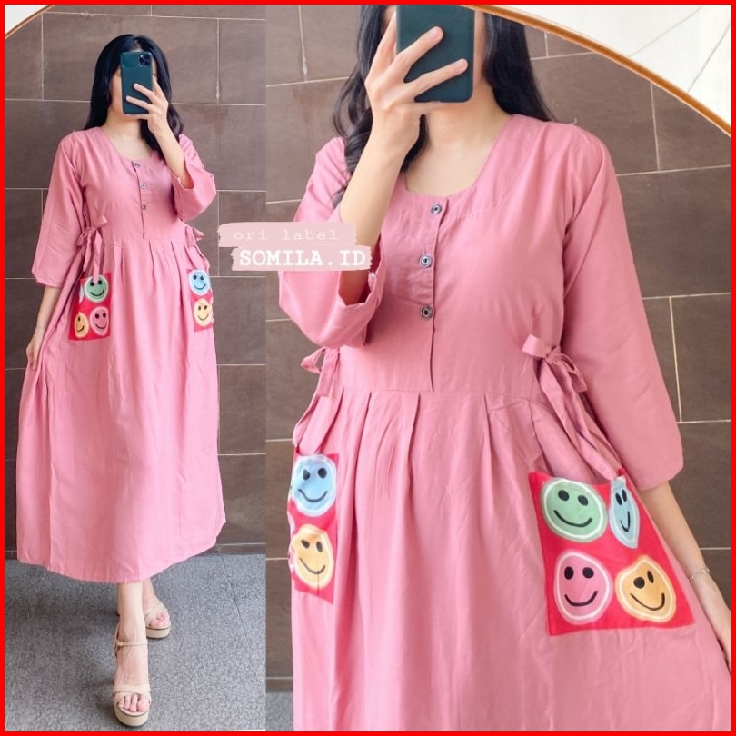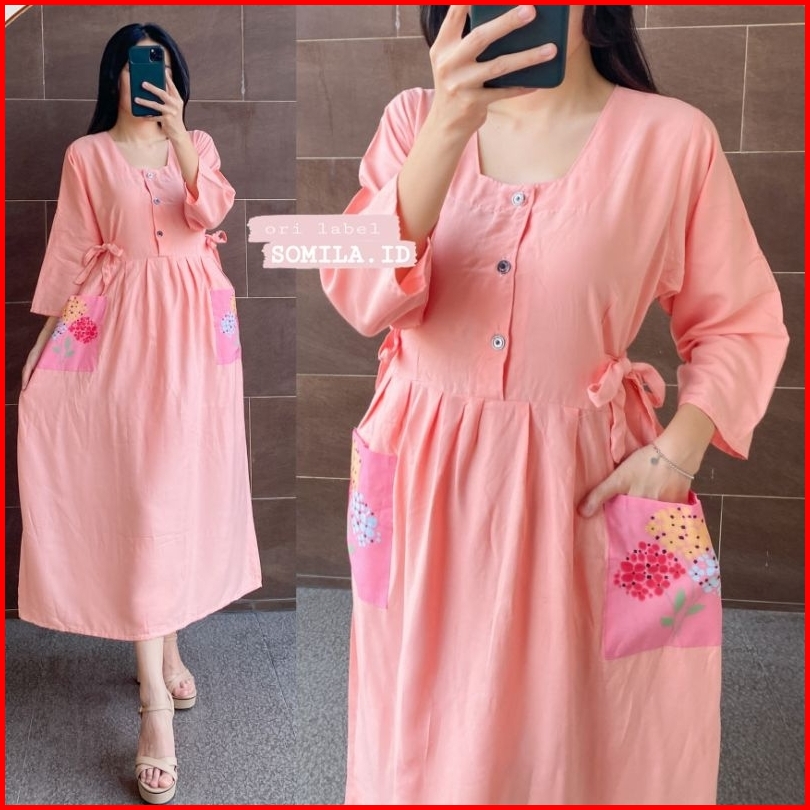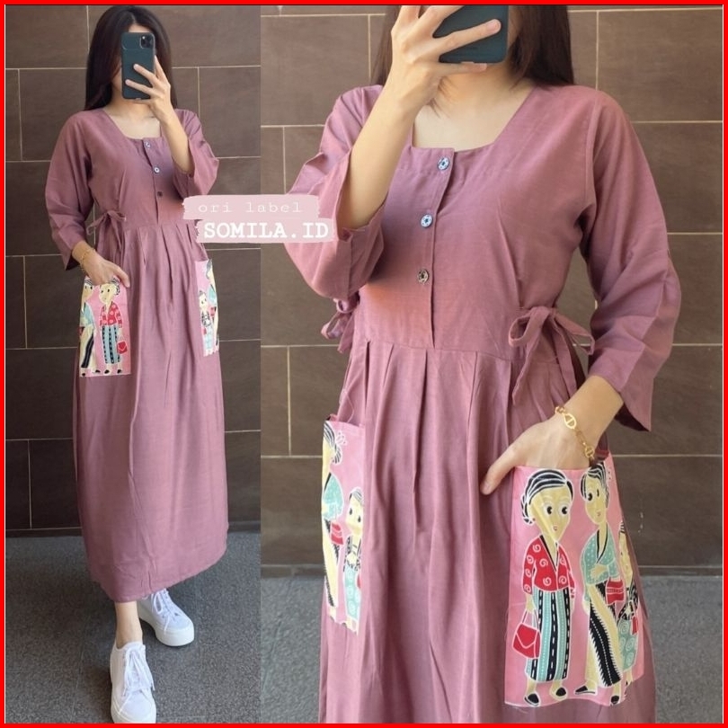 Grosir Daster Somila.id Busui Chibi Panjang Lengan 7 8 Pinggang Serut Batik Aplikasi Frame