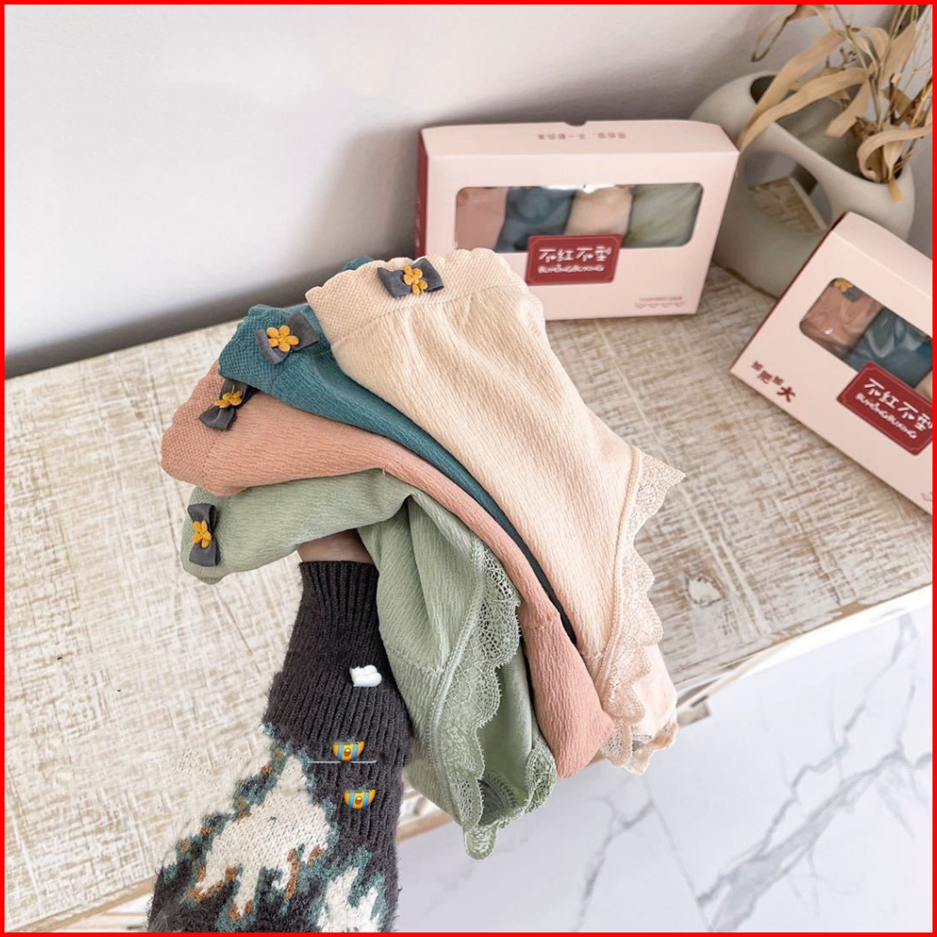 Hoho Hwang C-322celana Dalam Wanita Jumbo 4 In 1 Premium Antibakteri Cd Cewek Dekorasi Pita Renda