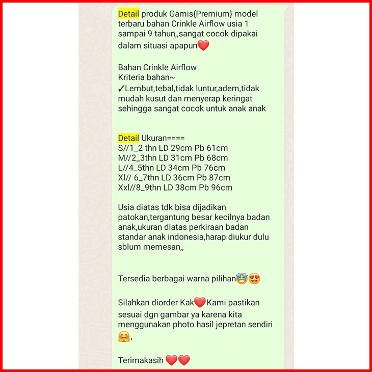 S 1-2TAHUN, M 2-3TAHUN, L 4-5TAHUN, XL 6-7TAHUN, XXL 8-9TAHUN