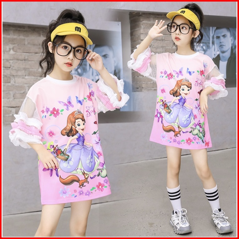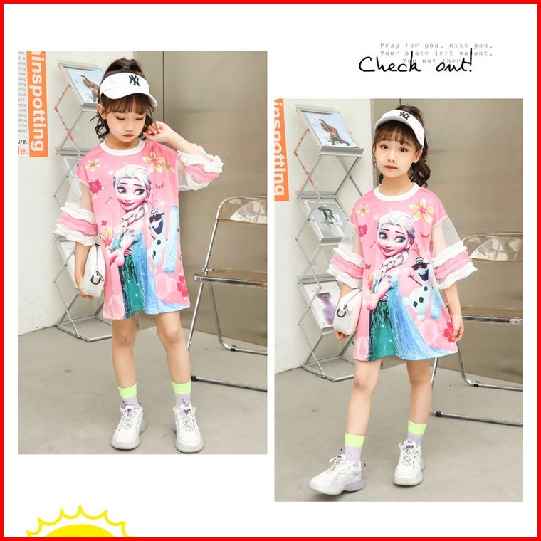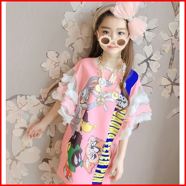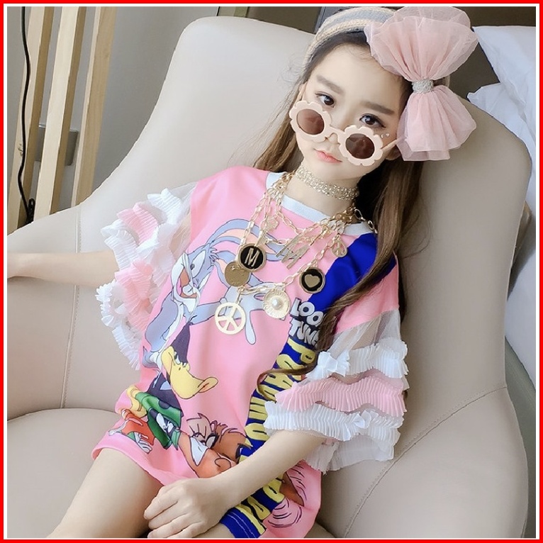 Babyfit 2-10thn Baju Dress Kaus Anak Tangan Renda Lebar Terusan Anak Perempuan Import 2604rp