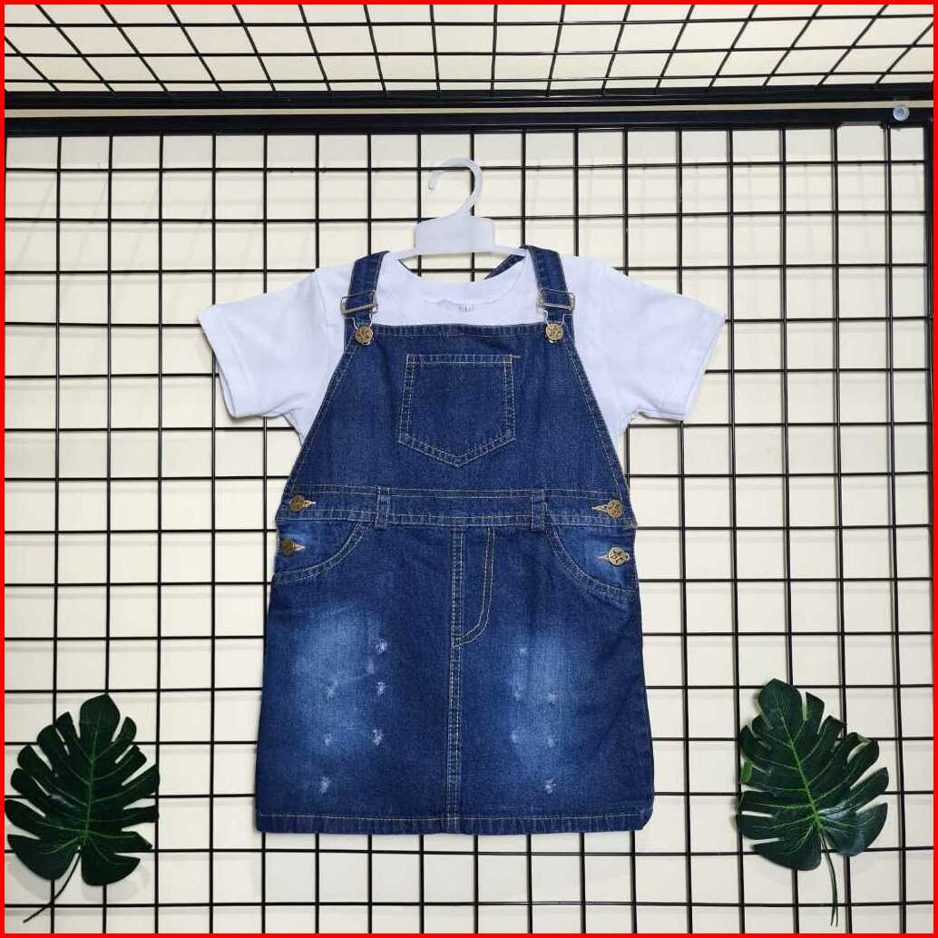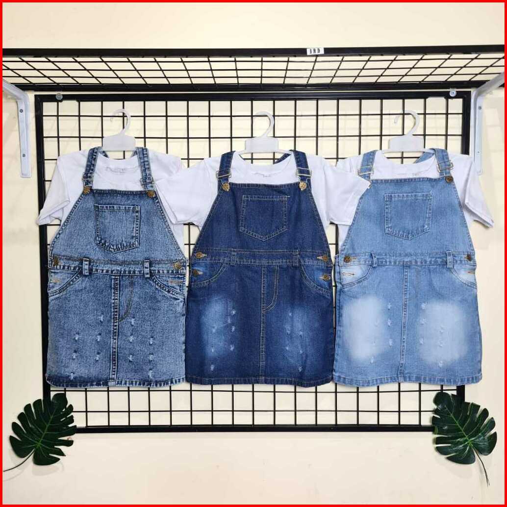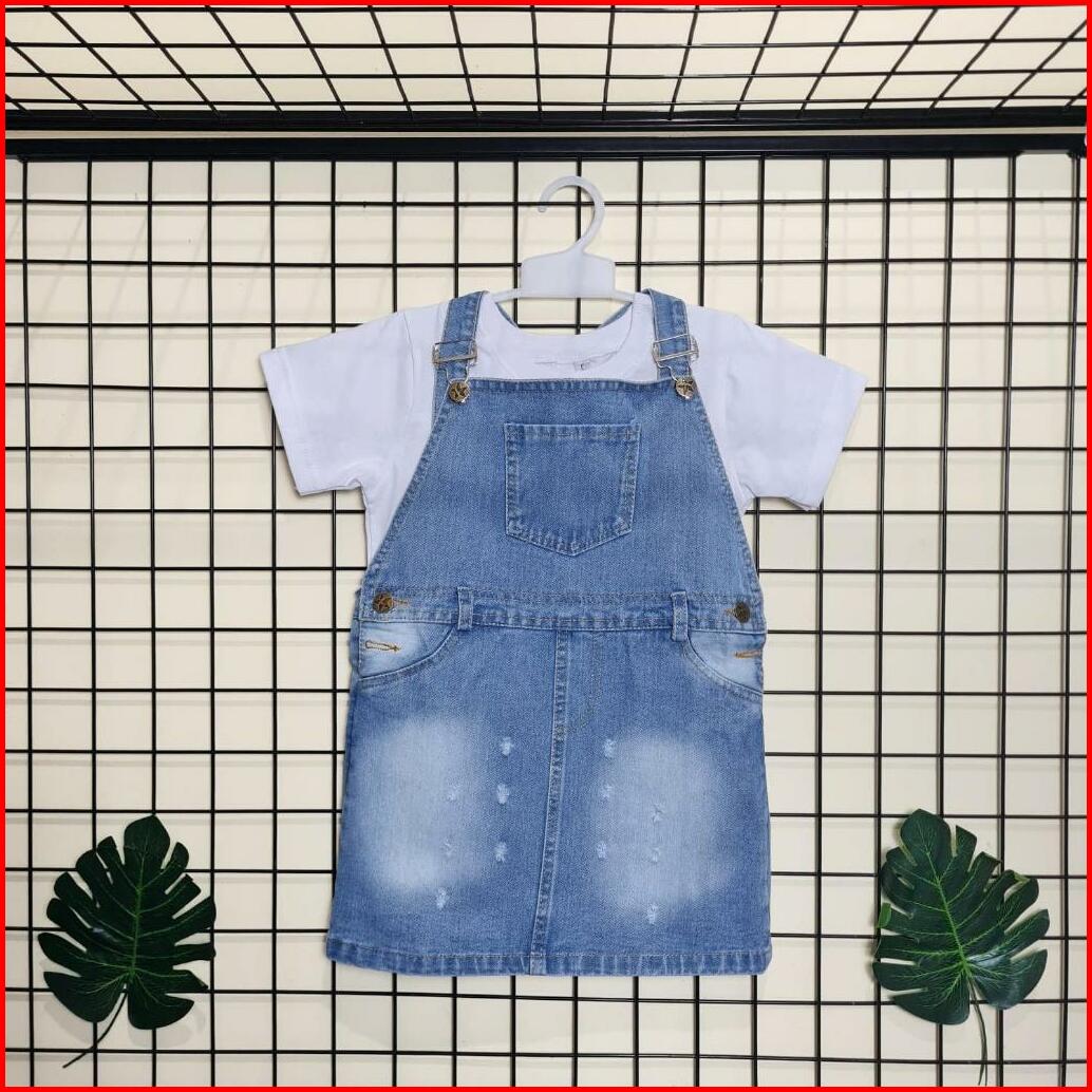 Setelan Overall Anak Perempuan Overall Rok Jeans Snow Wash Kaos Anak Perempuan