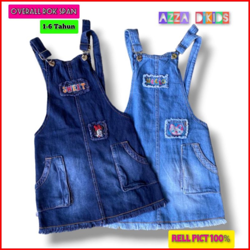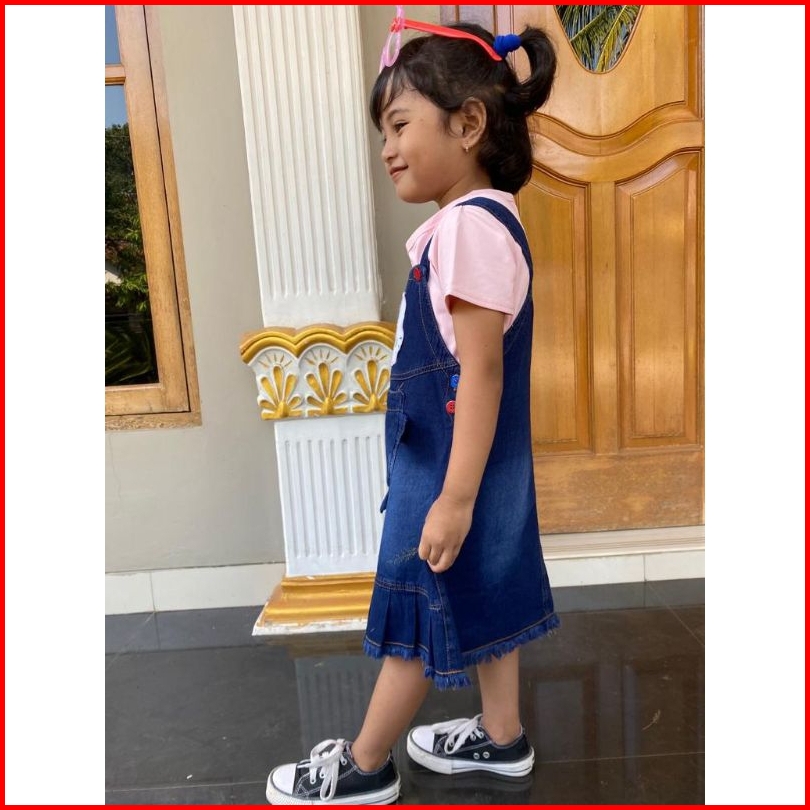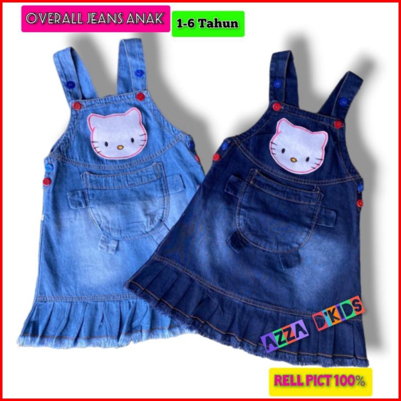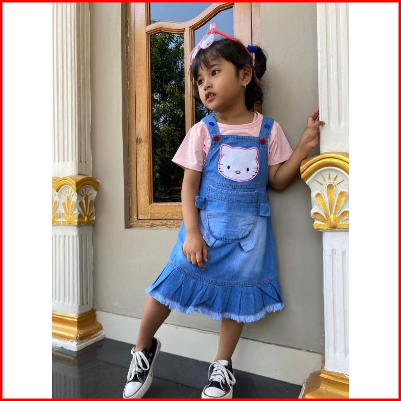 Overall Rok Rempel Jeans Anak Perempuan Bordil Hello Kitty Usia 1-6 Tahun