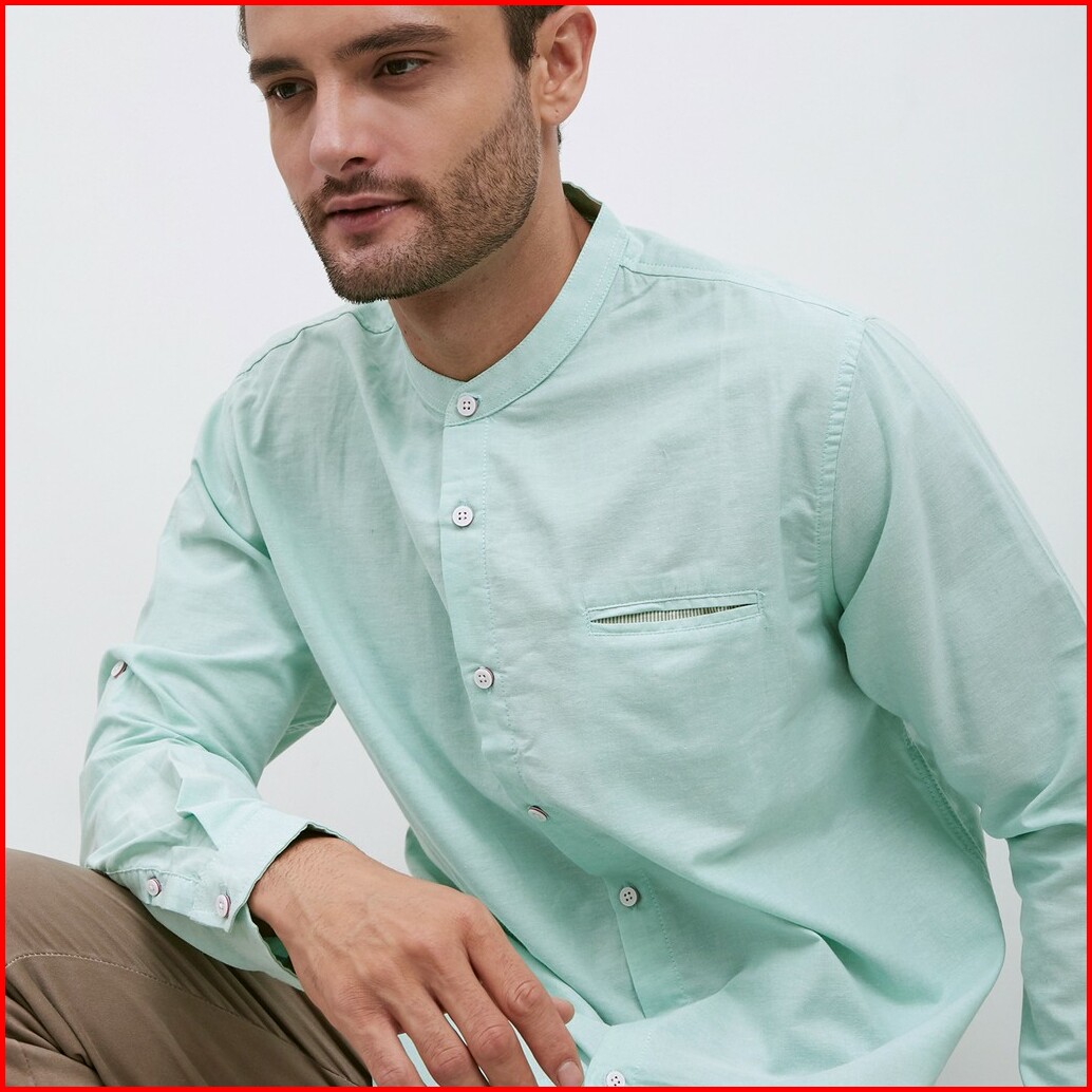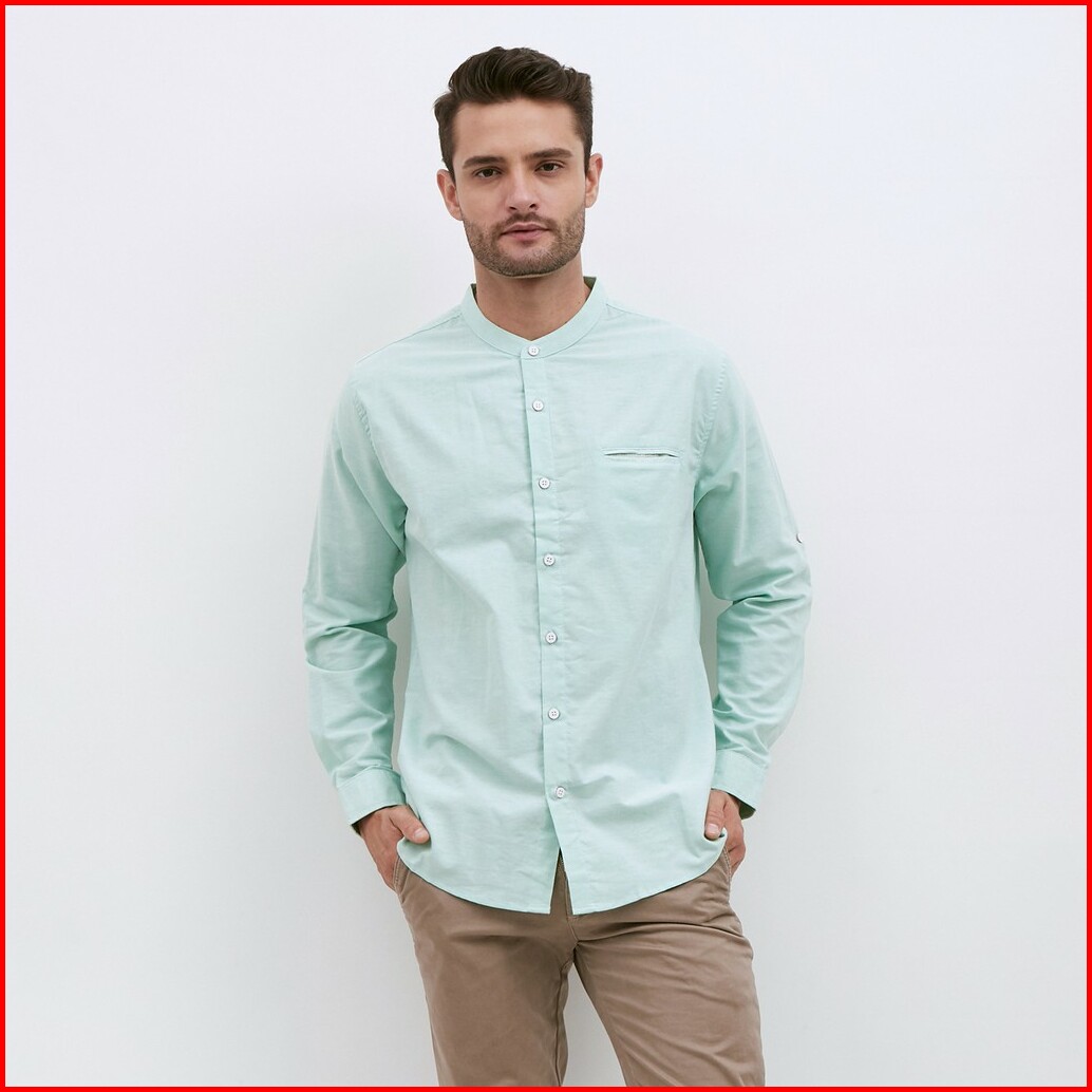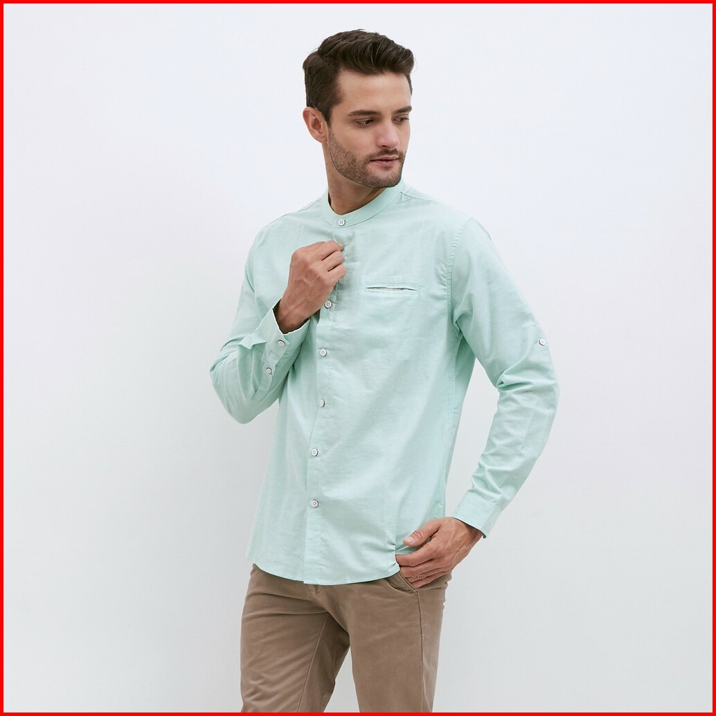 M231 Kemeja Pria Shanghai Polos Oxford Panjang Mint 1552c