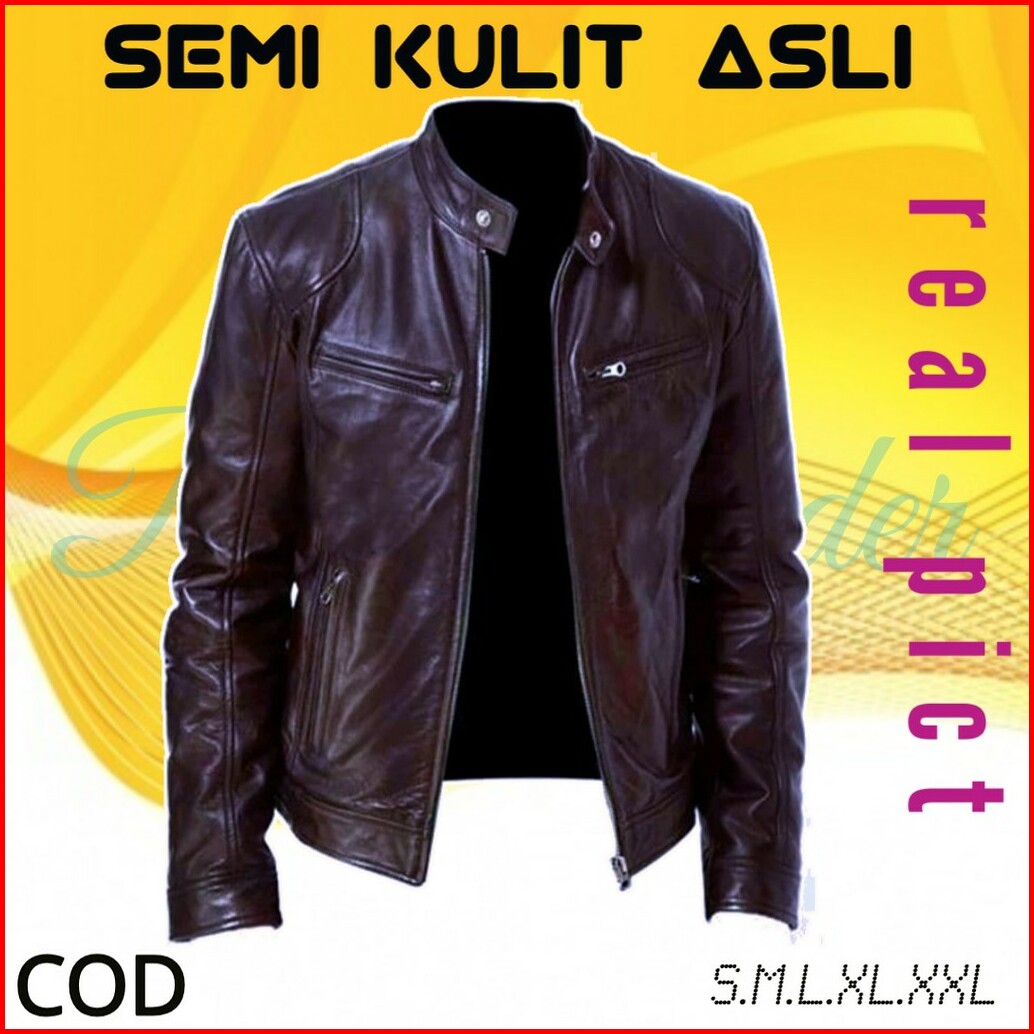 C O D Jaket Pria Kulit Asli Original Pundak Semi Kulit Sintetis Terbaru