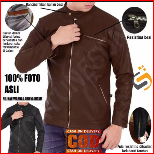 Jaket Kulit Domba Asli Pria Elegant Brownie Arl 033 Silverstone Rfla Ariel Noah 90