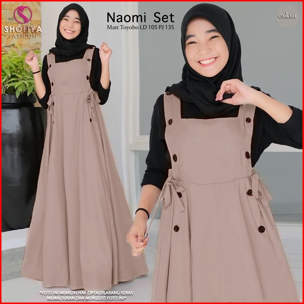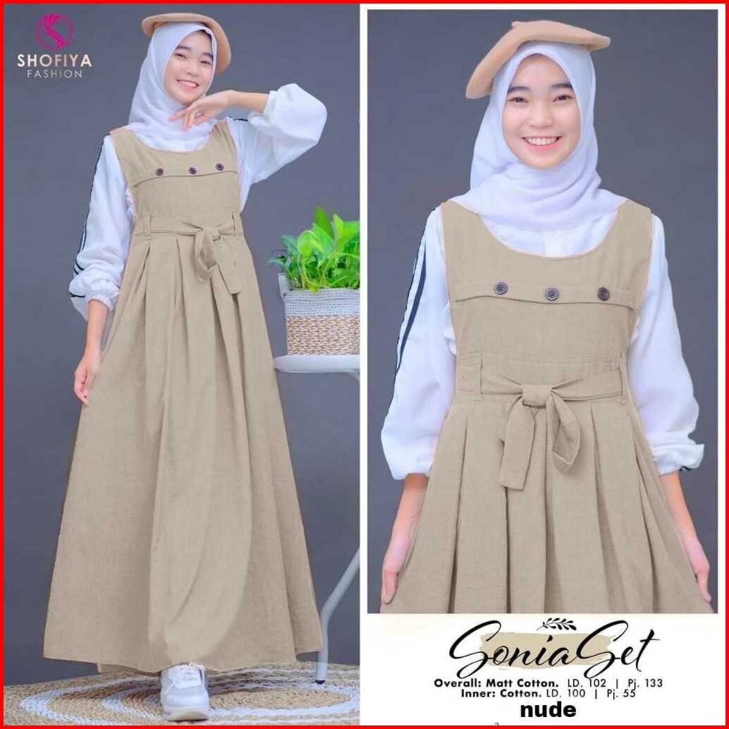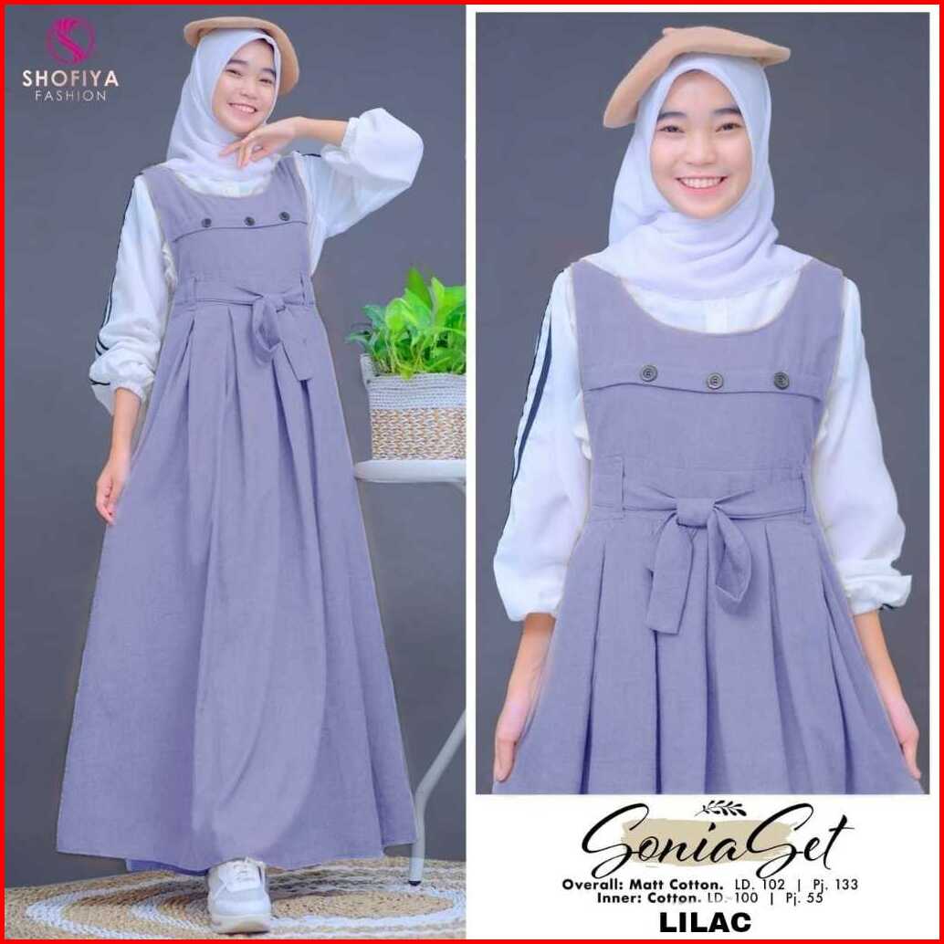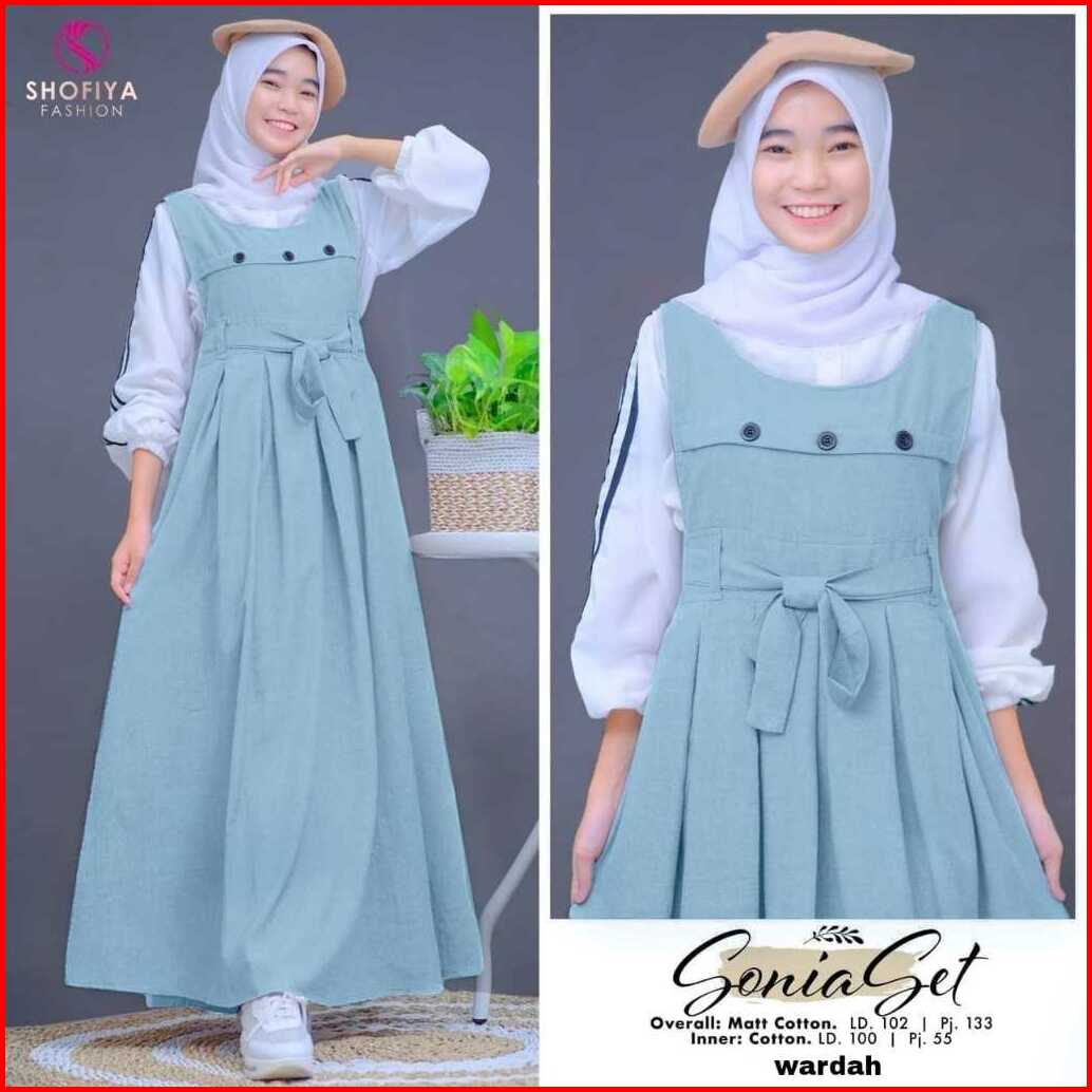 Sonia Set Naomi Dan Enzy Arumi Overall Anak Remaja Dress Outer Inner Matt Cotton By Shofiya