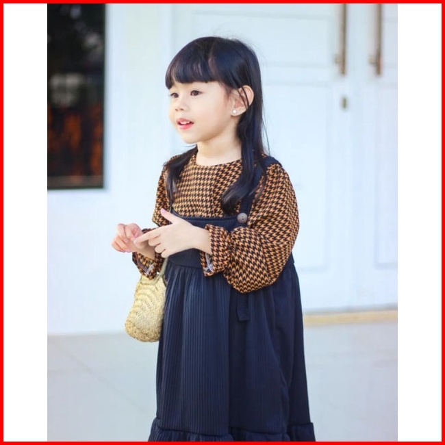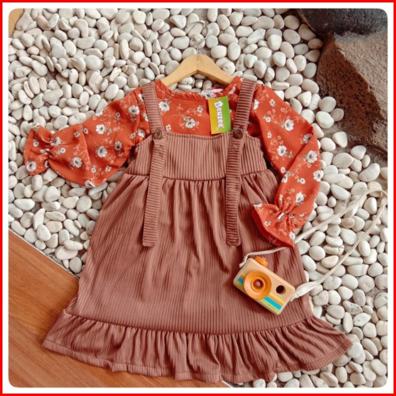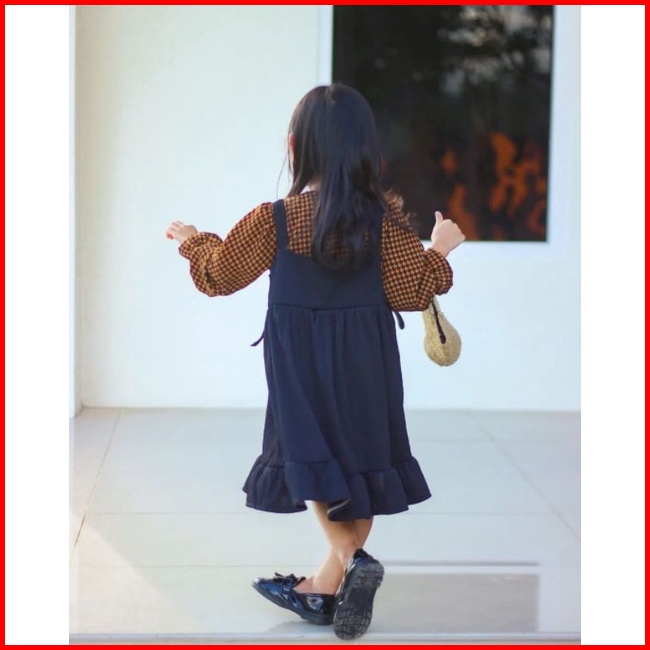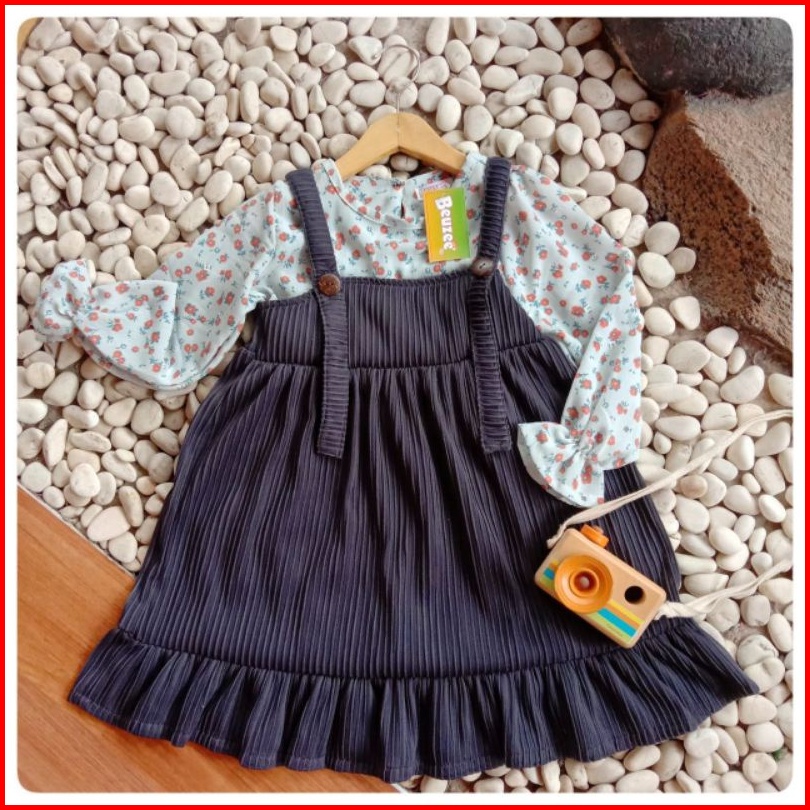 Overall Dress Overall Anak Perempuan Leoni Set Atasan Tunik Lengan Panjang 1-6 Tahun