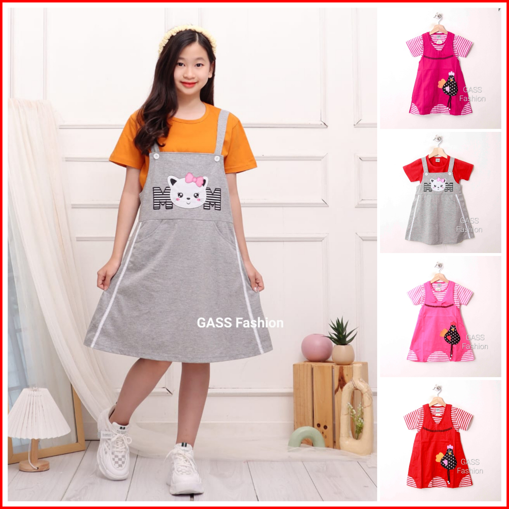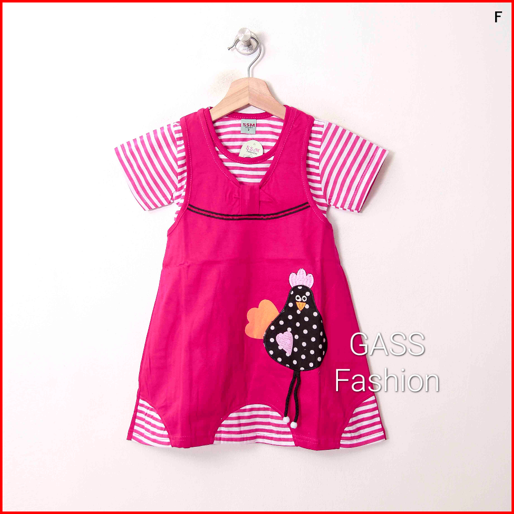 Pakaian Anak Perempuan Dress Overall Usia 1 2 3 4 5 6 7 8 Tahun Bordir Ayam