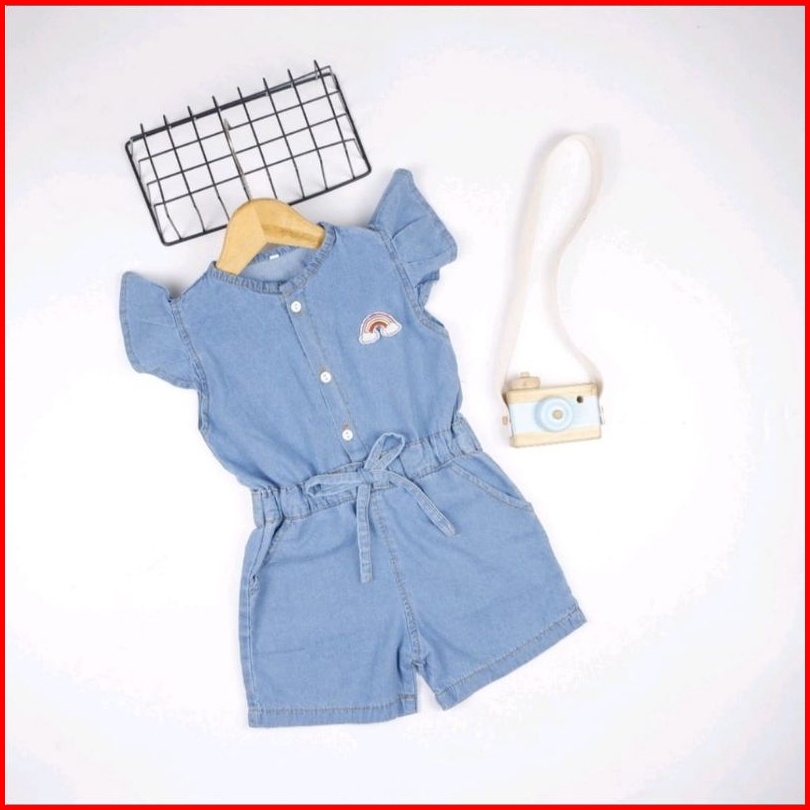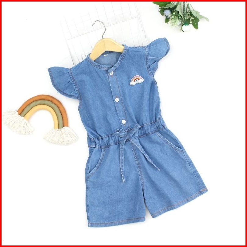 Jumpsuit Rainbow - Jumpsuit Anak 1-3 Th Jumper Soft Jeans Bordir Pelangi