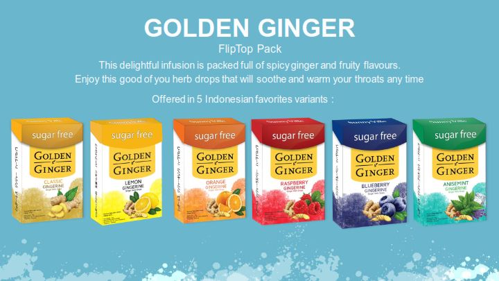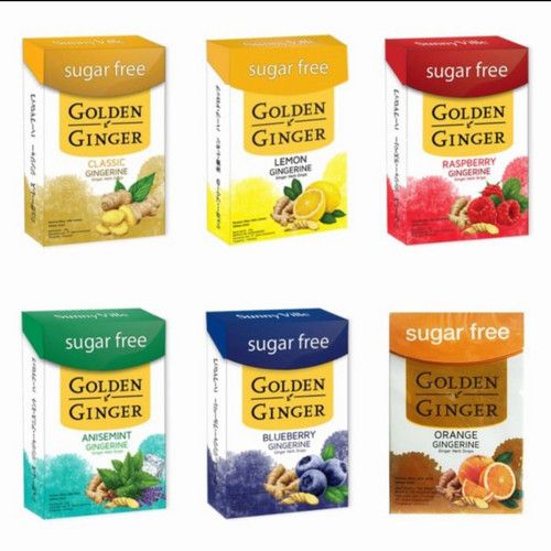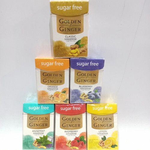 Permen Premium Jahe Golden Ginger Sugar Free Fliptop 45 Gr Classic, Lemon, Orange, Blueberry, Anisemint, Raspberry