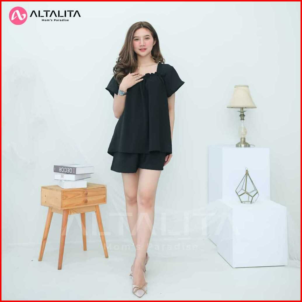 Altalita - One Set Arunika Setelan Wanita Hotpans Crinkle Airflow Premium Baju Tidur Wanita Dewasa Lengan Pendek Kekinia