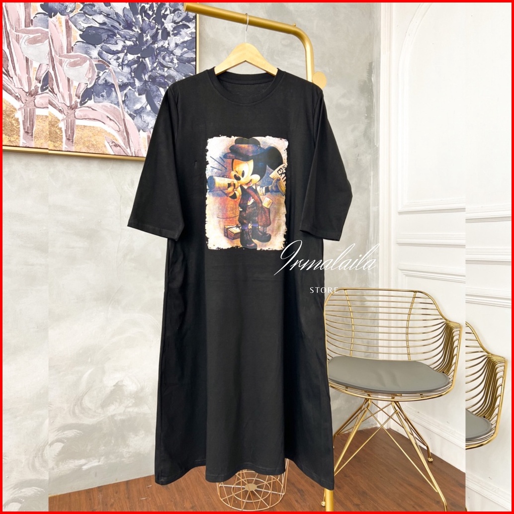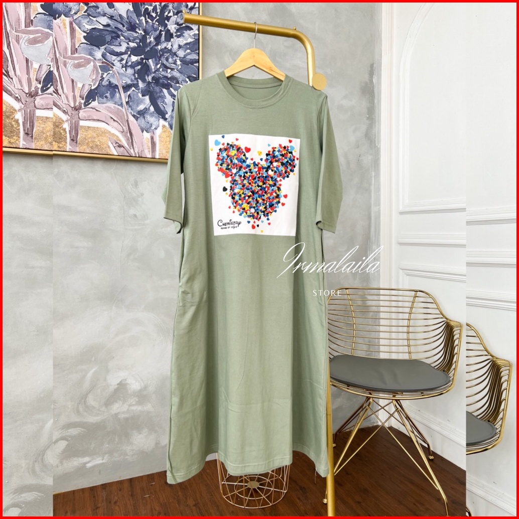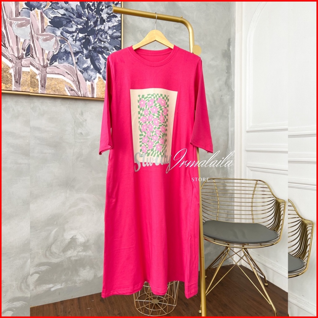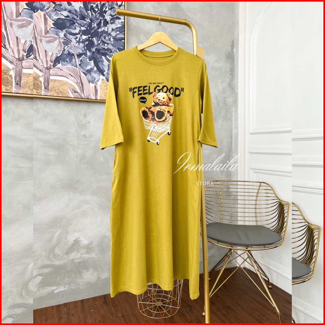 Midi Dress Wanita Kaos Cotton Combed Viral