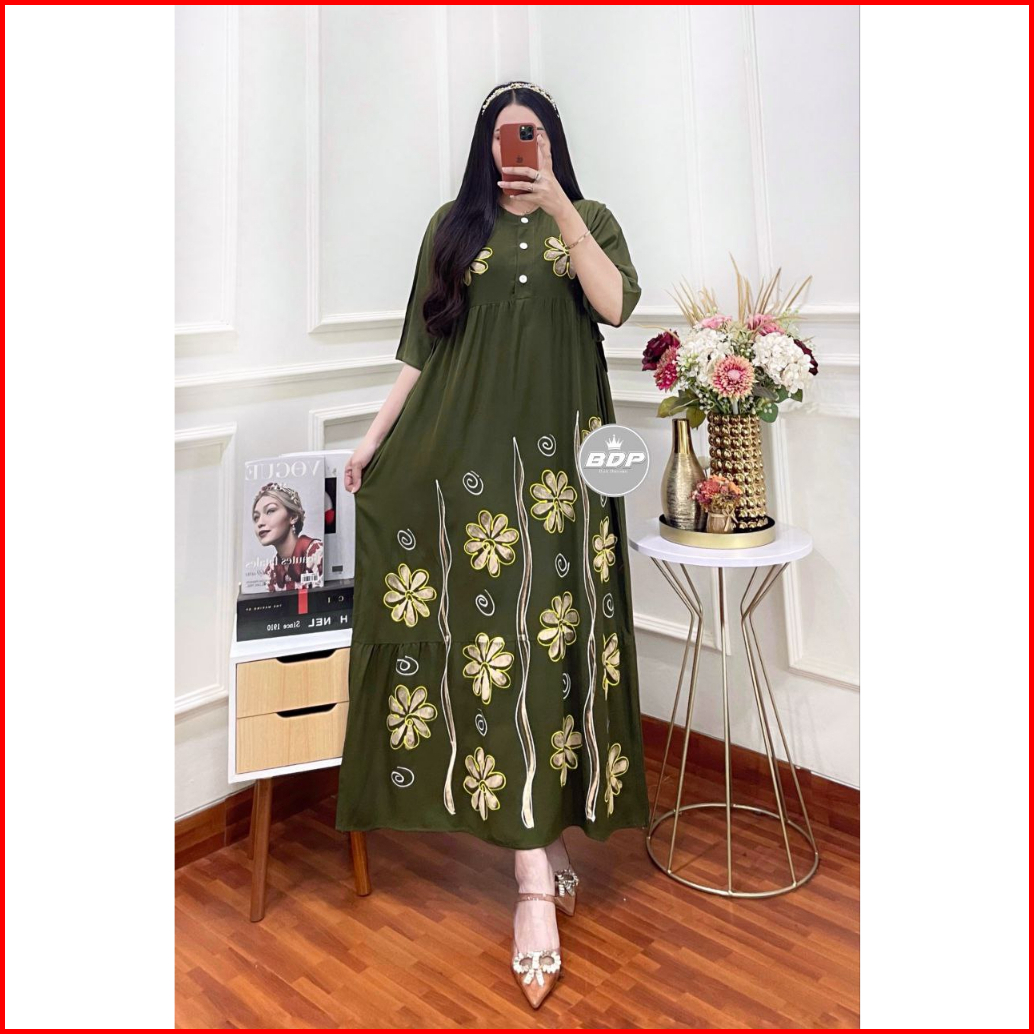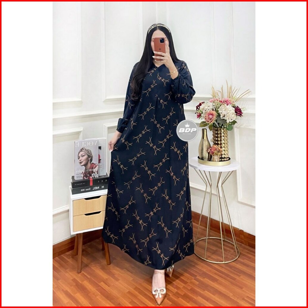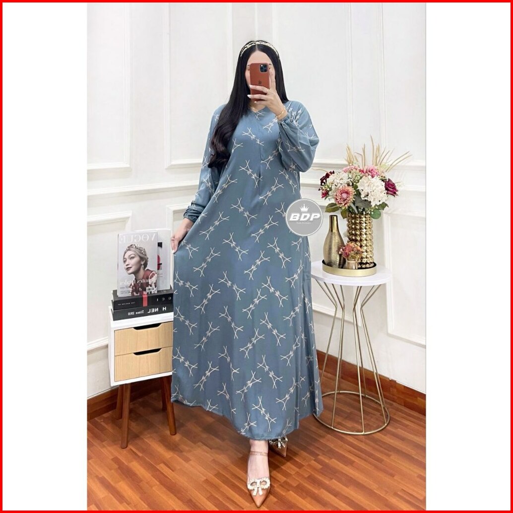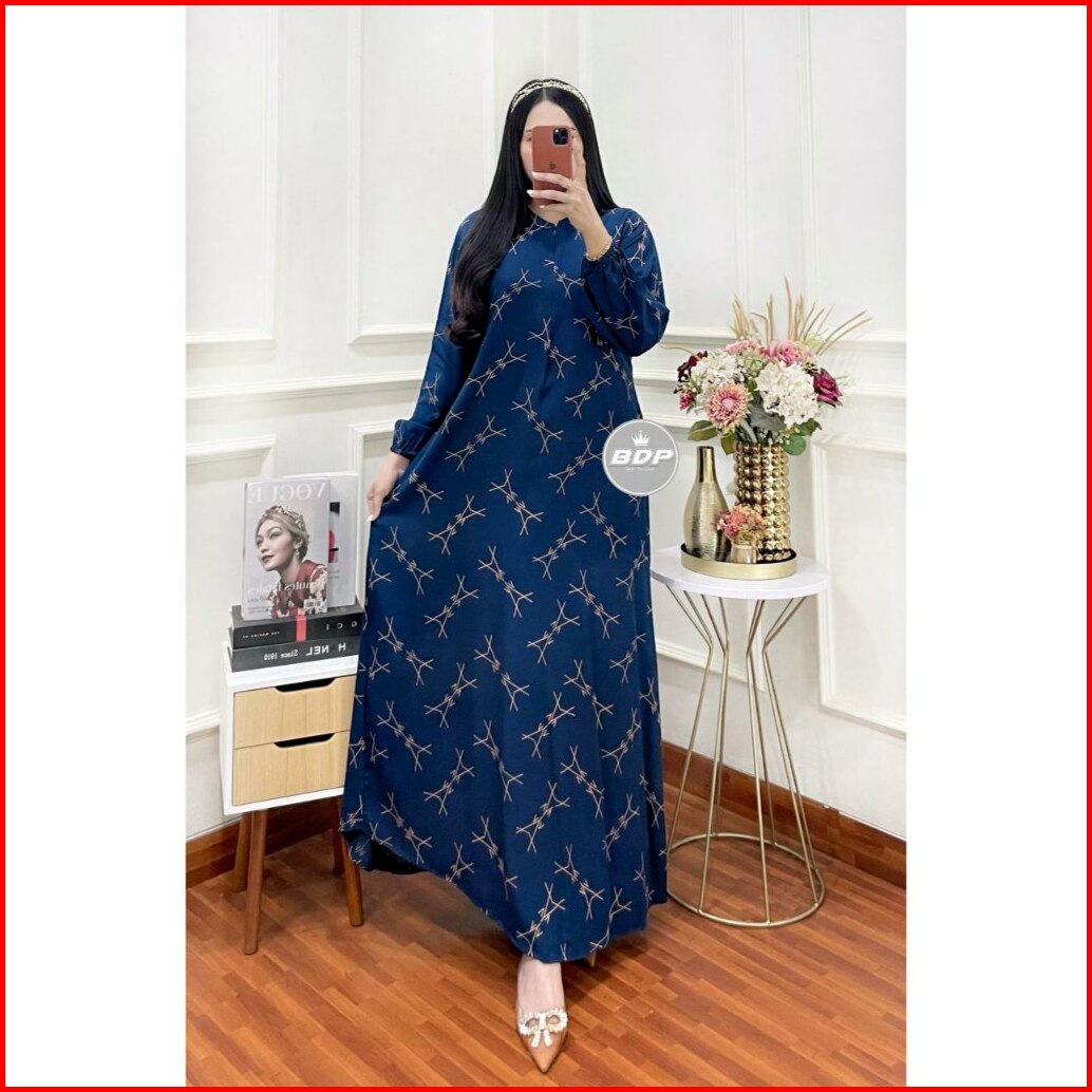 Dianputri - Daster Dress Maura Batik Cap Rayon Grade A Busui Resleting Depan Daster Wanita Lengan Panjang Daster Kekinia