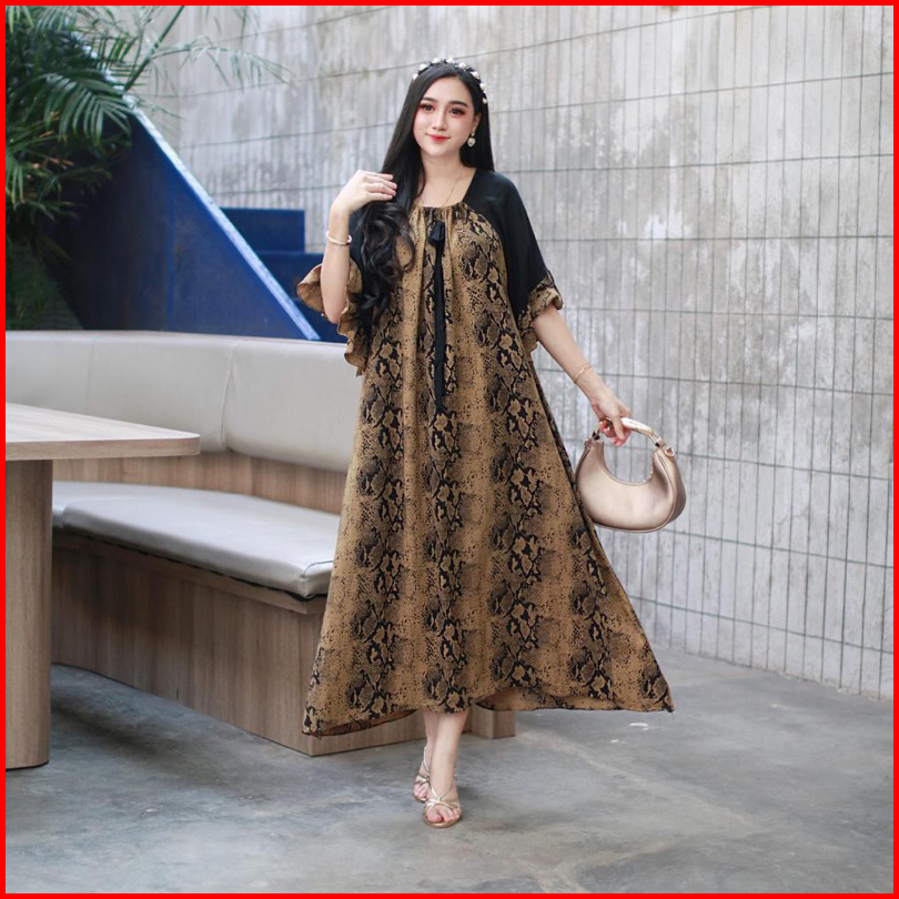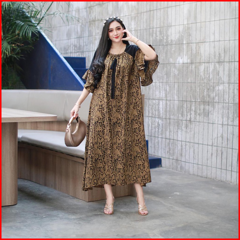 Daster Andin Arab Fuji 22 Leopard Ld 130 Rayon Super Grade A Ori Model Leher Berkerut Bumil