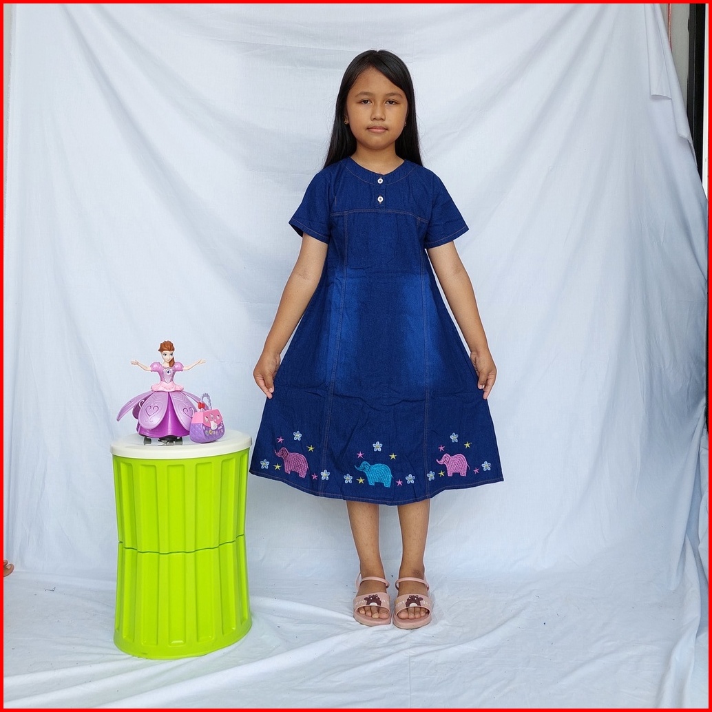 Dress Jeans Anak Motif Boneka Umur 1-17thn