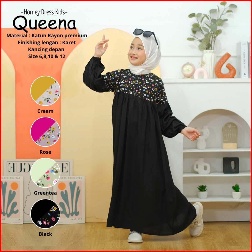 Gamis Anak Motif Queena Dress Termurah - Bahan Katun Rayon Premium - Best Seller