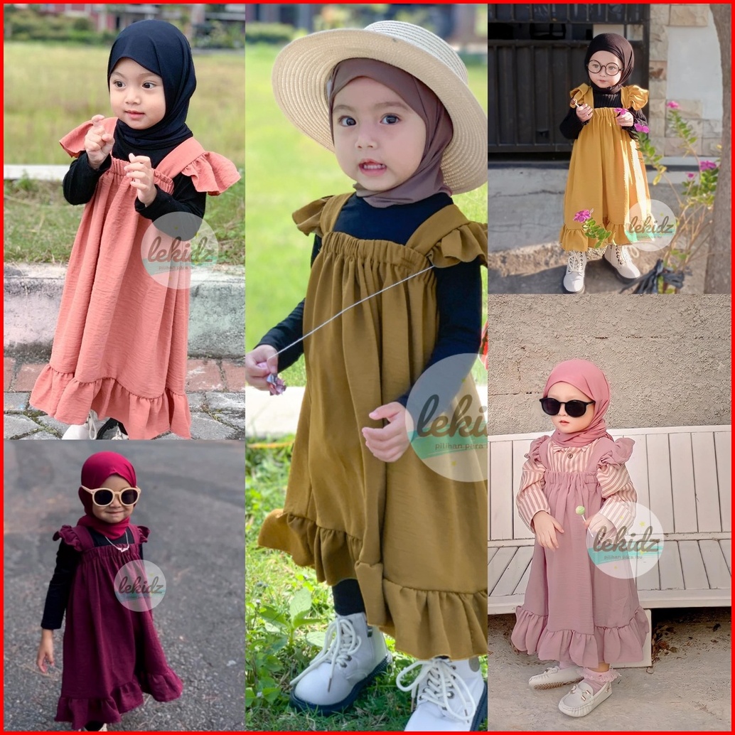 Sabira Baju Gaun Dress Pesta Anak Cewek Perempuan Ruffle Bahan Katun Crinckle Usia 1-7 Tahun