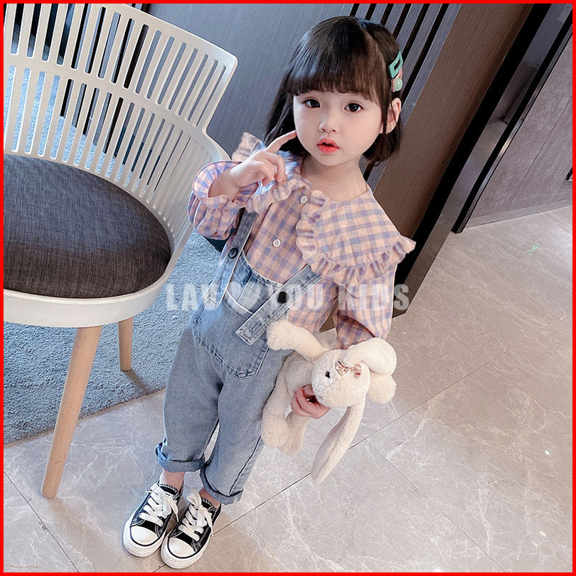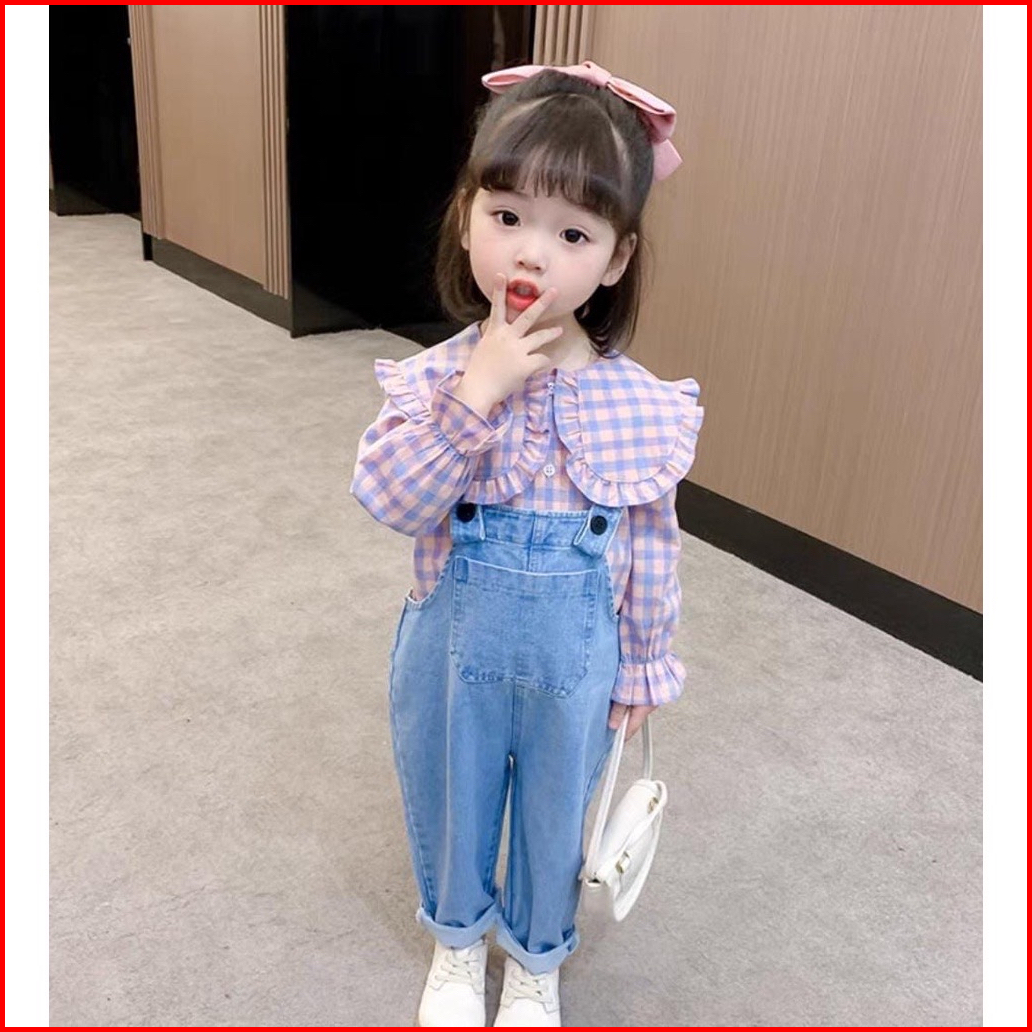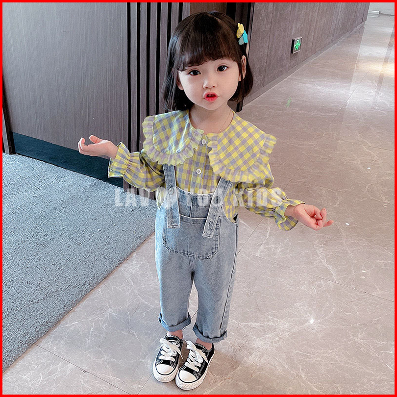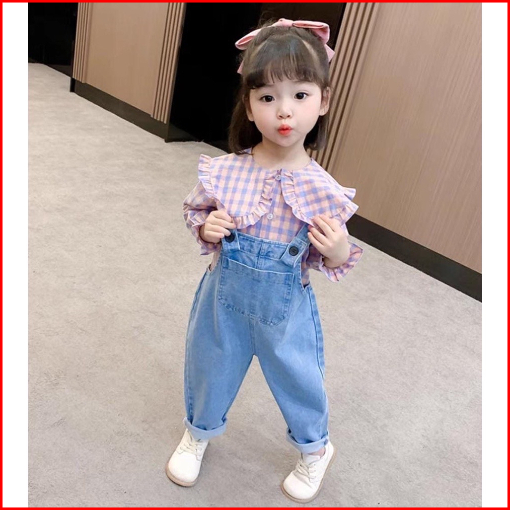 New Overall Jeans Crystal Setelan Overall Anak Perempuan Lengan Panjang Setelan Jeans Lebaran 2023 Set Nak Impor Premium