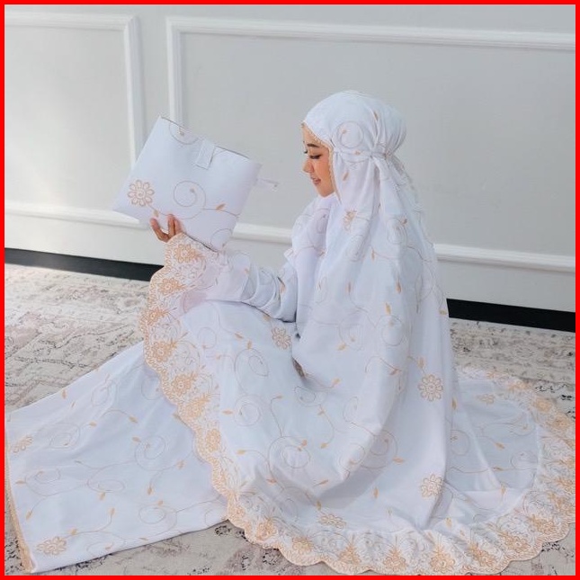Halimah - Mukena Motif Gracella Full Bordir Ukuran Jumbo Mukena Premium Perlengkapan Sholat Wanita Dewasa Mukena Polos T