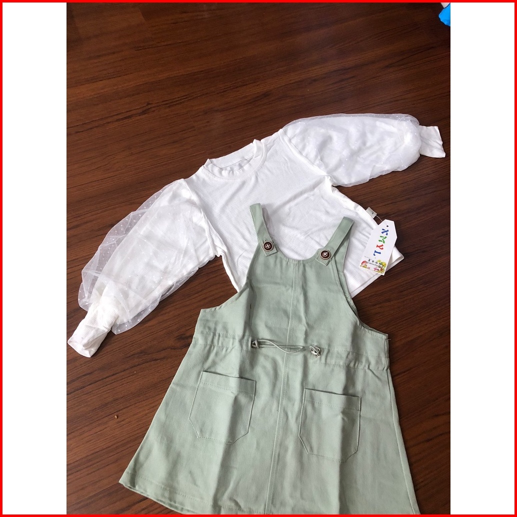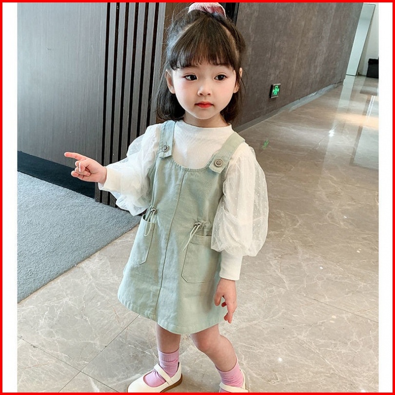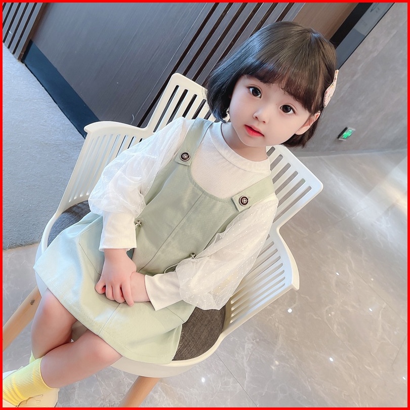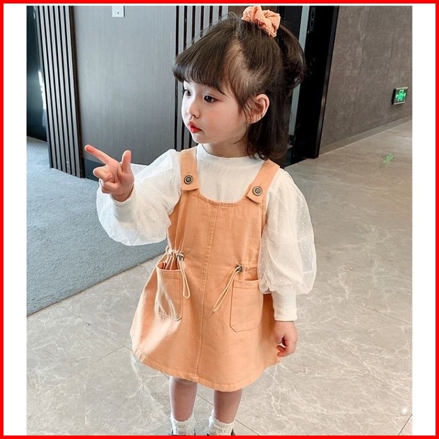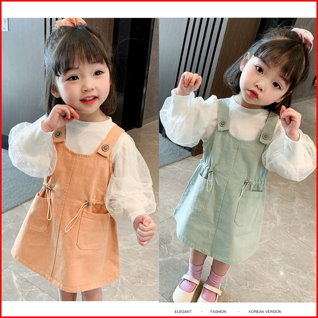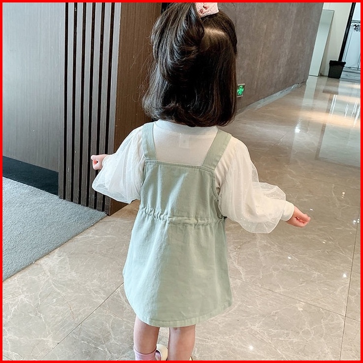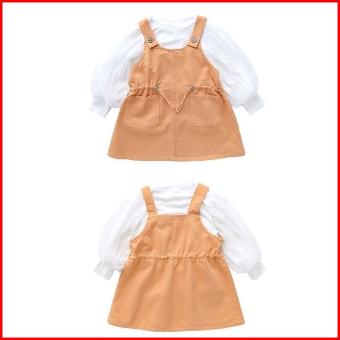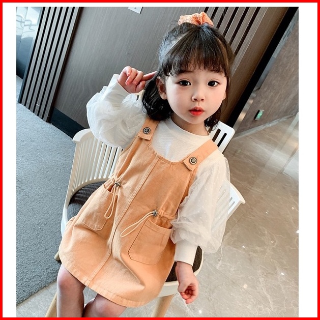 Cocobaby.id New 2021 Dress Overall Anak Perempuan 2in1 Fluffy Shoulder