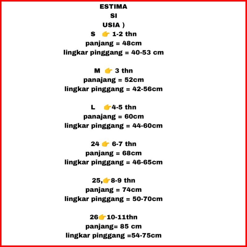 S/ 1-2thn, M/ 3 thn, L/ 4-5 thn, Xl/6-7thn, Xxl/ 8-9 thn, Xxxl / 10-12 thm