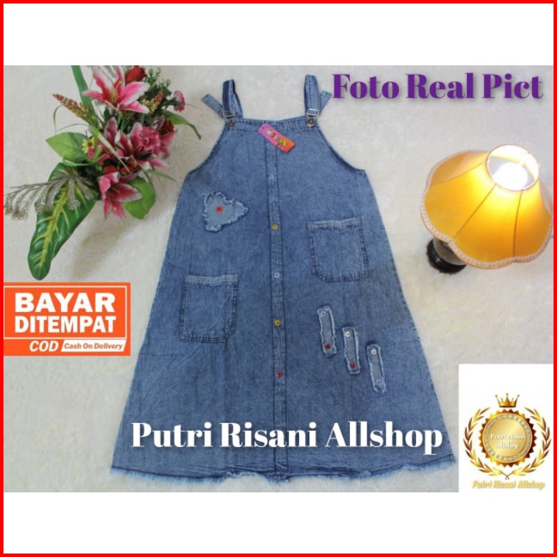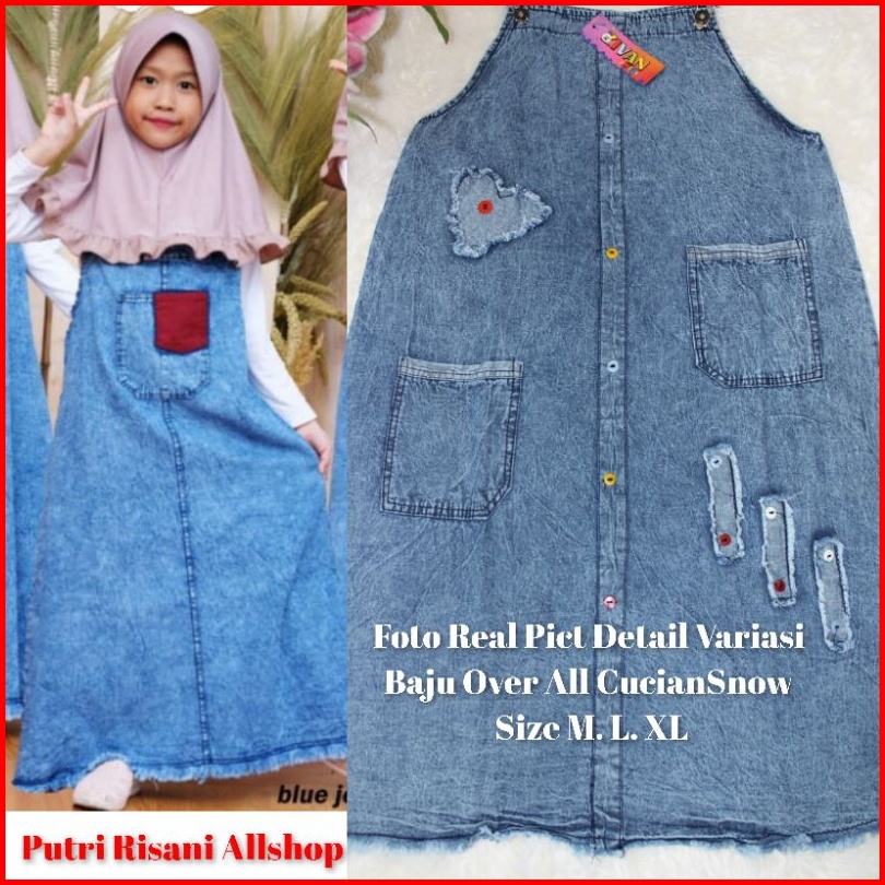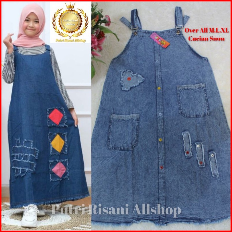 Baju Kodok Atau Over All Snow Anak-anak Perempuan Bahan Shoft Jeans Ukuran M L Xl Umur 5-10 Tahun
