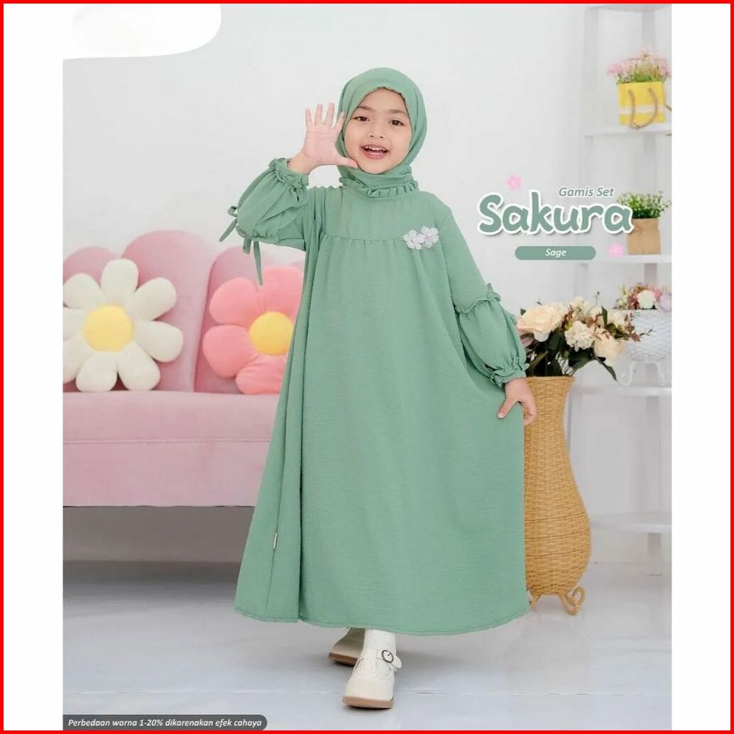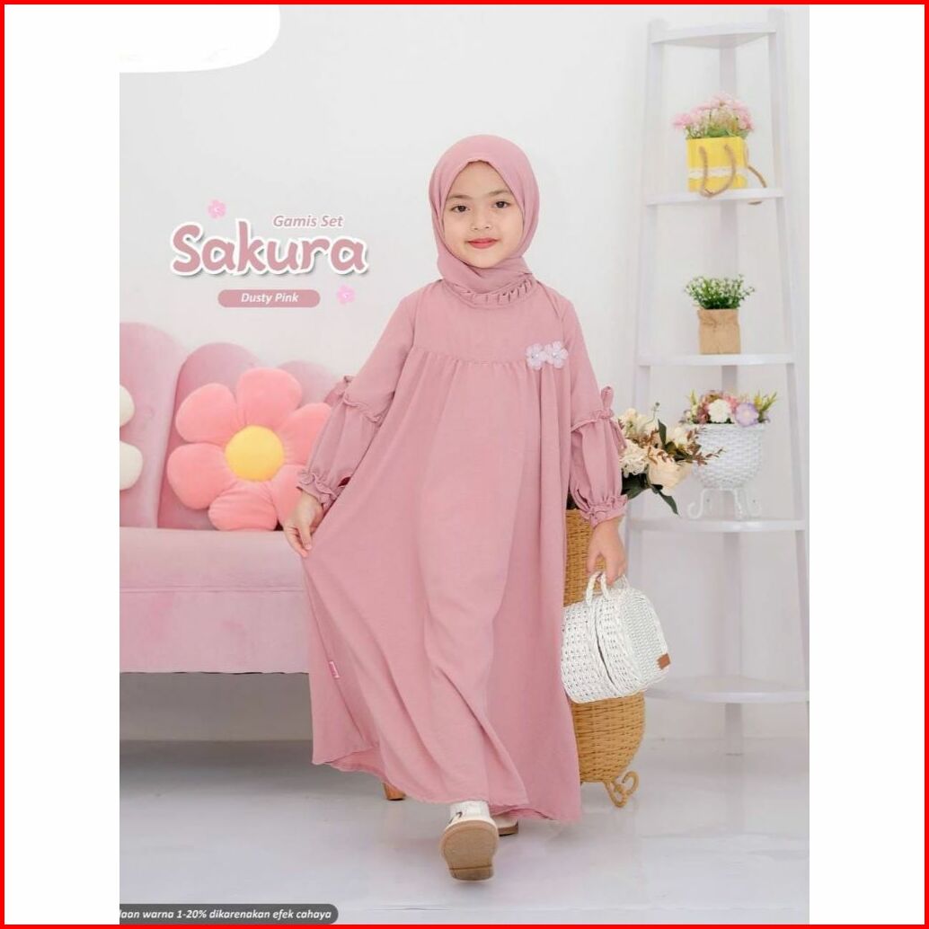 Gamis Anak Perempuan Plus Jilbab Sakura Untuk Usia 4 5 6 7 8 9 Tahun Gamis Anak Terbaru 2024 Lebaran